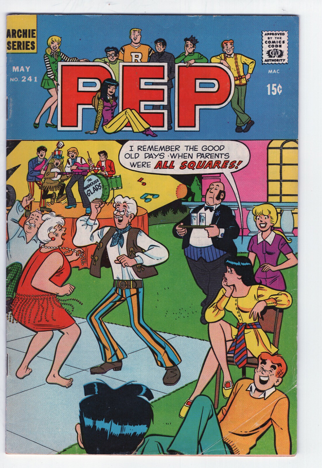 PEP COMICS #241 - 3.5, OW - Archie DESCRIPTION:This vey nice, unrestored copy is complete, fully readable and has both covers attached. The book has high cover gloss, a tight spine and off white pages. This book features Archie. The book is sent in a mylar sleeve with a backing board. Condition is a very conservatively graded 3.5, VG-.SHIPPING INFORMATION:Combine our auctions and $ave on shipping!Please remember that Media Rate may take up to 4 weeks delivery.FEDEX services available.Nevada residents, please add sales tax.We accept PayPal, MasterCard, Visa, Discover, American Express.NOTES AND FINE PRINT: Welcome to Redbeard's Book Den! For most that have collected comic books for the last 30 years, you have probably heard of us. Redbeard's founder and current owner is Ron Pussell (aka Redbeard), senior Overstreet Price Guide consultant since 1980.REDBEARD'S BOOK DENPO Box 217Crystal Bay, NV 89402-0217 _gsrx_vers_1710 (GS 9.9.1 (1710))