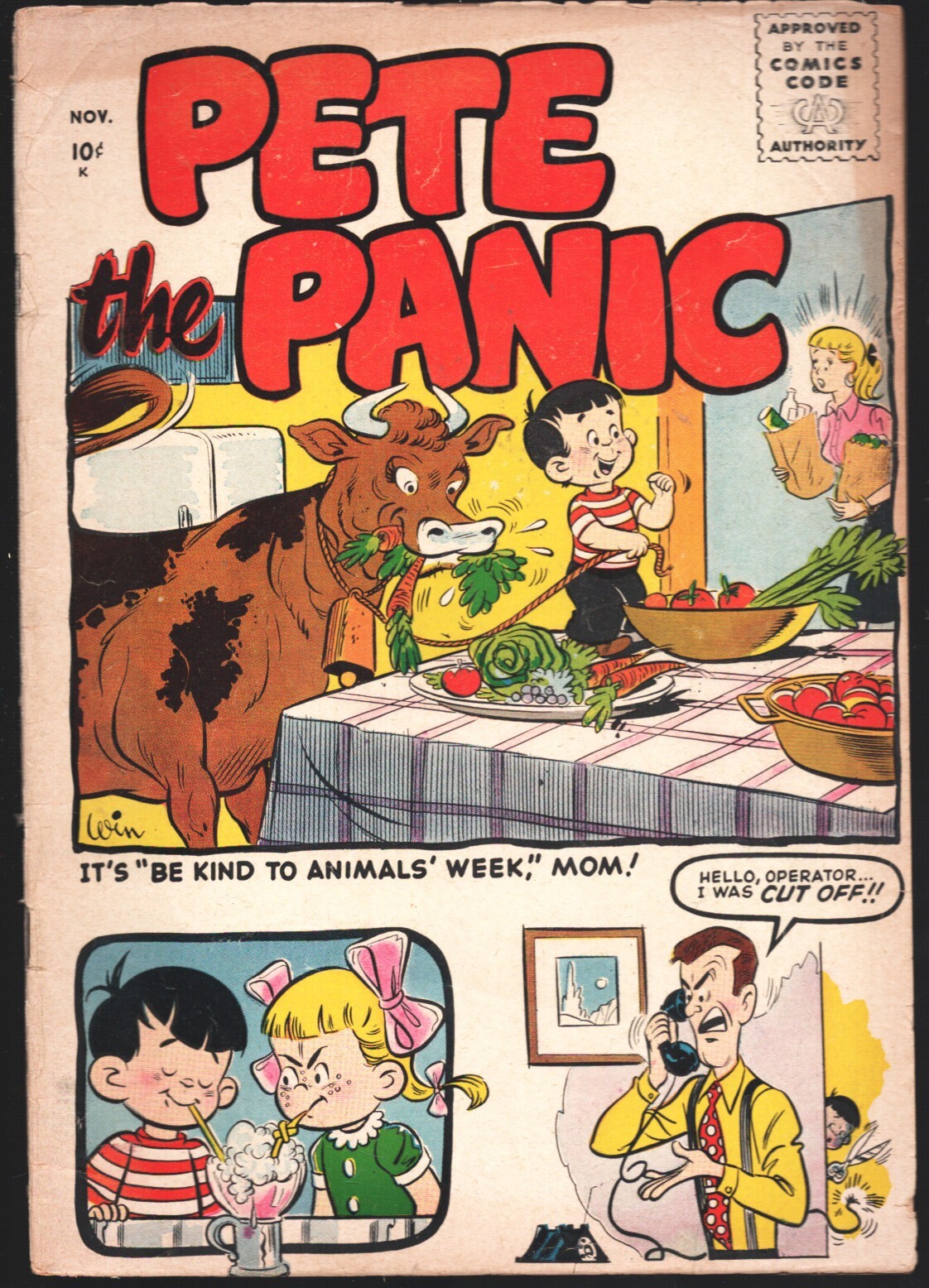 Pete The Panic 1955-Standard-1st and only issue-no #-ice cream cover -First and only issue, no # -Killed by the Comics Code -Ice cream cover -Published as a Dennis the Menace clone -Low distribution, very scarce today -Small spine splits top & bottom Title: Pete The Panic Issue: N/A Grade: VG- SKU: LI-130-090Seller Information