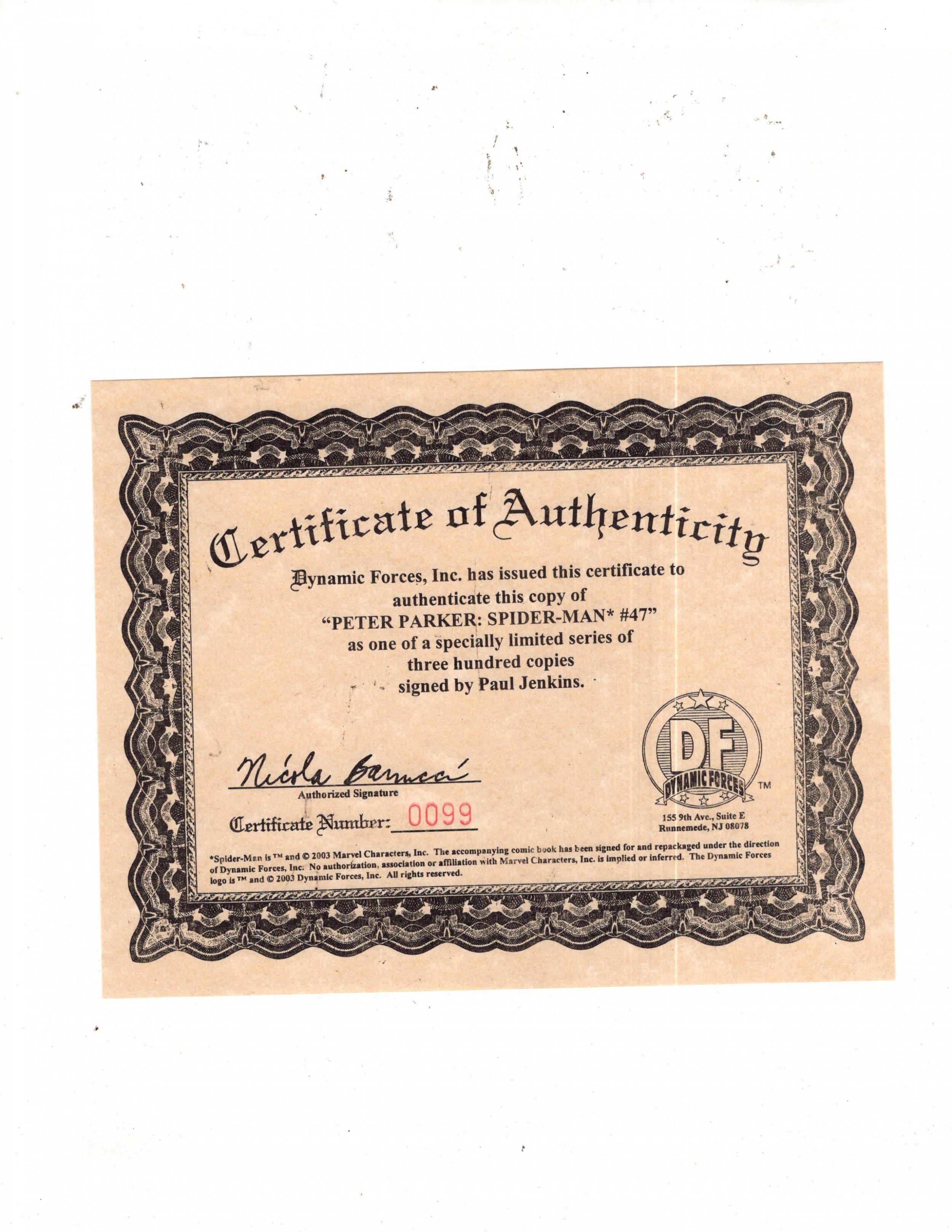 Peter Parker: Spider-Man #47 (2002) Signed on Cover By Artist w/COA
