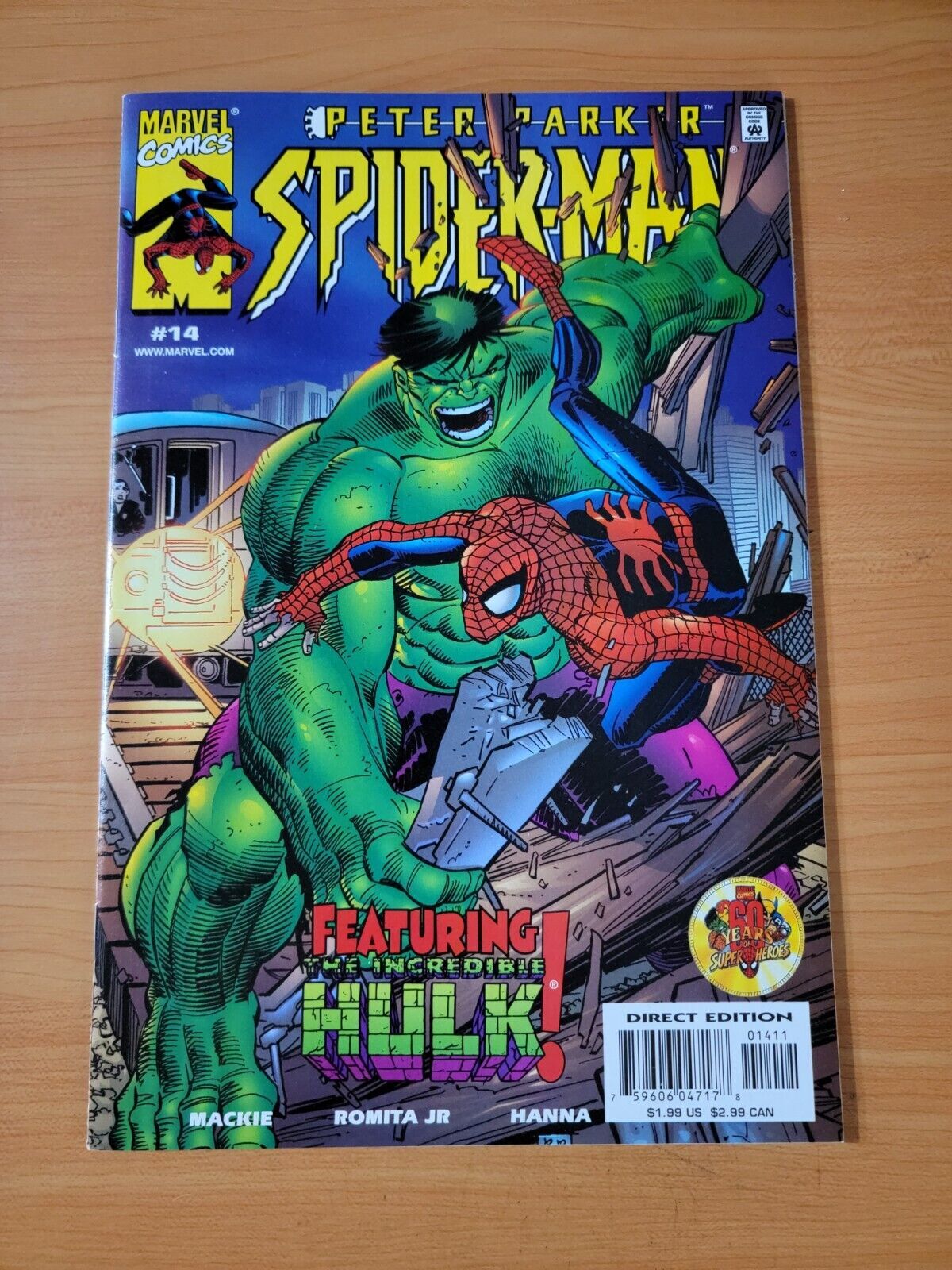 Item DescriptionPeter Parker Spider-Man v2 #14 Direct Market EditionPublisher: Marvel ComicsPublished: 2000Item Grade/ConditionGrade: NEAR MINTFor more information about this grade and other grades, please see our grading standards.~ WE TAKE HIGH DEFINITION PICTURES OF OUR COMICS ~ For more detail use the ZOOM Function and check them out yourself! ~Shipping Info:United States: Comic Book & Magazine Orders of all sizes, big and small ship for a flat Single Shipping ChargeInternational: We use Calculated Shipping! ~ This insures that you get the LOWEST POSSIBLE COST! ~ Please give us one business day to calculate large orders! The Calculator for Hip is pretty bad for international, contact us if you are looking to order multiple books so we can help you make it work on the back end! As a courtesy to our customers, we insure all orders over 50$ US ~ YOU DONT PAY EXTRA!Delivery TimeWe process and ship all orders within 1 business days. Once shipped, estimated U.S. transit time is 2-10 business days; international 14-21 business days.(Orders placed on Friday afternoon as well as weekends will be shipped the next business day as we do not ship on the weekends).PackingOmnomax Traders has mastered packing to ensure our orders of a "damage-free transport."Using the following methods, we have seen a nearly perfect 99% success rate for undamaged comics!Here is how our orders ship:All Orders :Bagged AND Boarded, ALWAYS NO EXCEPTIONS!Shipped in a Gemini Comic Mailer OR Tightly secured between 4x stiff pieces of corrugated cardboard (double Sandwiched)Sealed on all 4 sides with strong packing tape (Items doesn't even wiggle).:*Now this method is nearly perfect! however we have seen damage happen to items ( only once or twice a year ) ~ this is often due to bad handling by the postal service. Always remember to contact us if this happens! we are committed to quality service!*Offers History