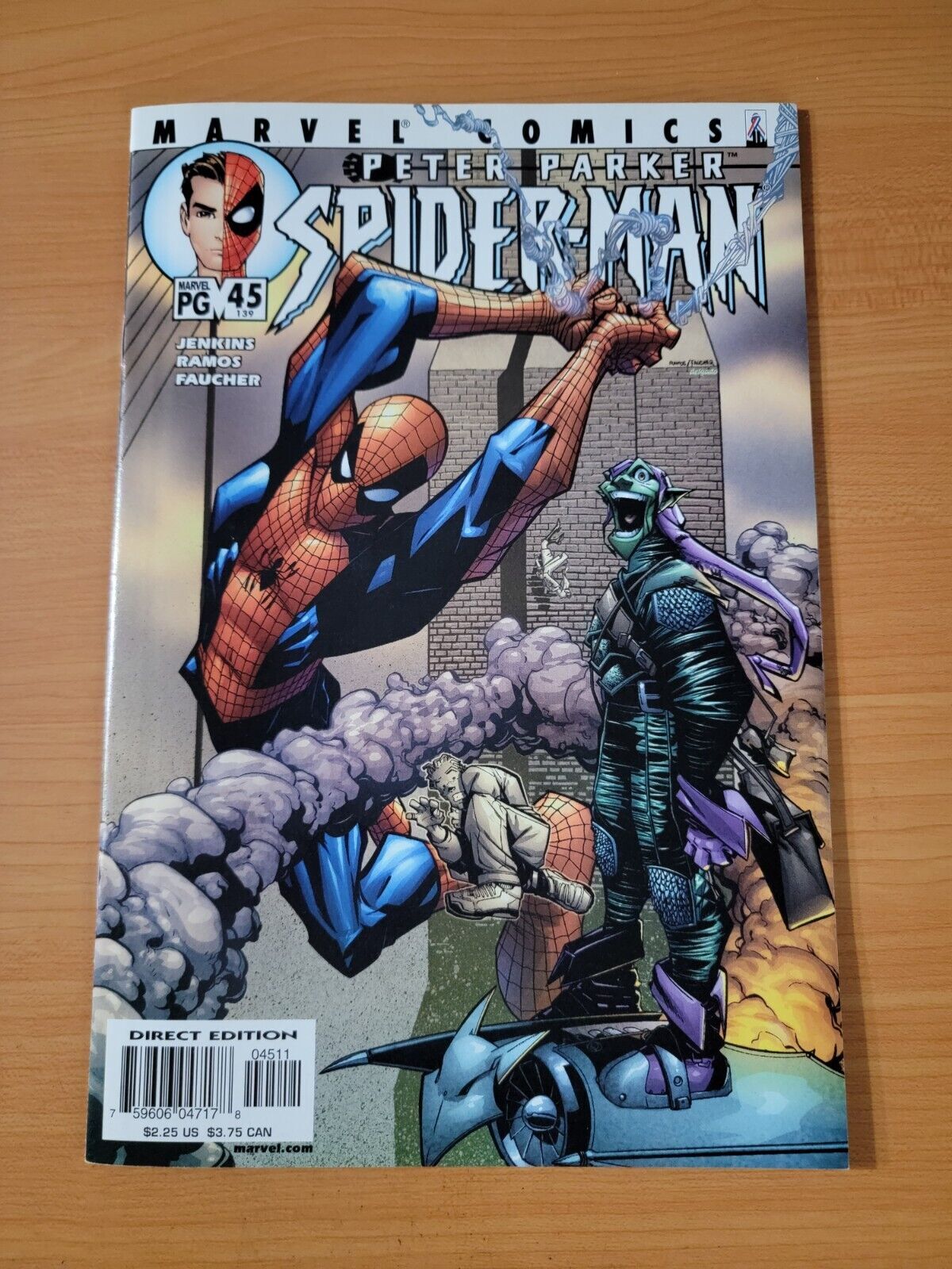 Item DescriptionPeter Parker Spider-Man v2 #45 (143) Direct Market EditionPublisher: Marvel ComicsPublished: 2002Item Grade/ConditionGrade: NEAR MINTFor more information about this grade and other grades, please see our grading standards.~ WE TAKE HIGH DEFINITION PICTURES OF OUR COMICS ~ For more detail use the ZOOM Function and check them out yourself! ~Shipping Info:United States: Comic Book & Magazine Orders of all sizes, big and small ship for a flat Single Shipping ChargeInternational: We use Calculated Shipping! ~ This insures that you get the LOWEST POSSIBLE COST! ~ Please give us one business day to calculate large orders! The Calculator for Hip is pretty bad for international, contact us if you are looking to order multiple books so we can help you make it work on the back end! As a courtesy to our customers, we insure all orders over 50$ US ~ YOU DONT PAY EXTRA!Delivery TimeWe process and ship all orders within 1 business days. Once shipped, estimated U.S. transit time is 2-10 business days; international 14-21 business days.(Orders placed on Friday afternoon as well as weekends will be shipped the next business day as we do not ship on the weekends).PackingOmnomax Traders has mastered packing to ensure our orders of a "damage-free transport."Using the following methods, we have seen a nearly perfect 99% success rate for undamaged comics!Here is how our orders ship:All Orders :Bagged AND Boarded, ALWAYS NO EXCEPTIONS!Shipped in a Gemini Comic Mailer OR Tightly secured between 4x stiff pieces of corrugated cardboard (double Sandwiched)Sealed on all 4 sides with strong packing tape (Items doesn't even wiggle).:*Now this method is nearly perfect! however we have seen damage happen to items ( only once or twice a year ) ~ this is often due to bad handling by the postal service. Always remember to contact us if this happens! we are committed to quality service!*Offers History