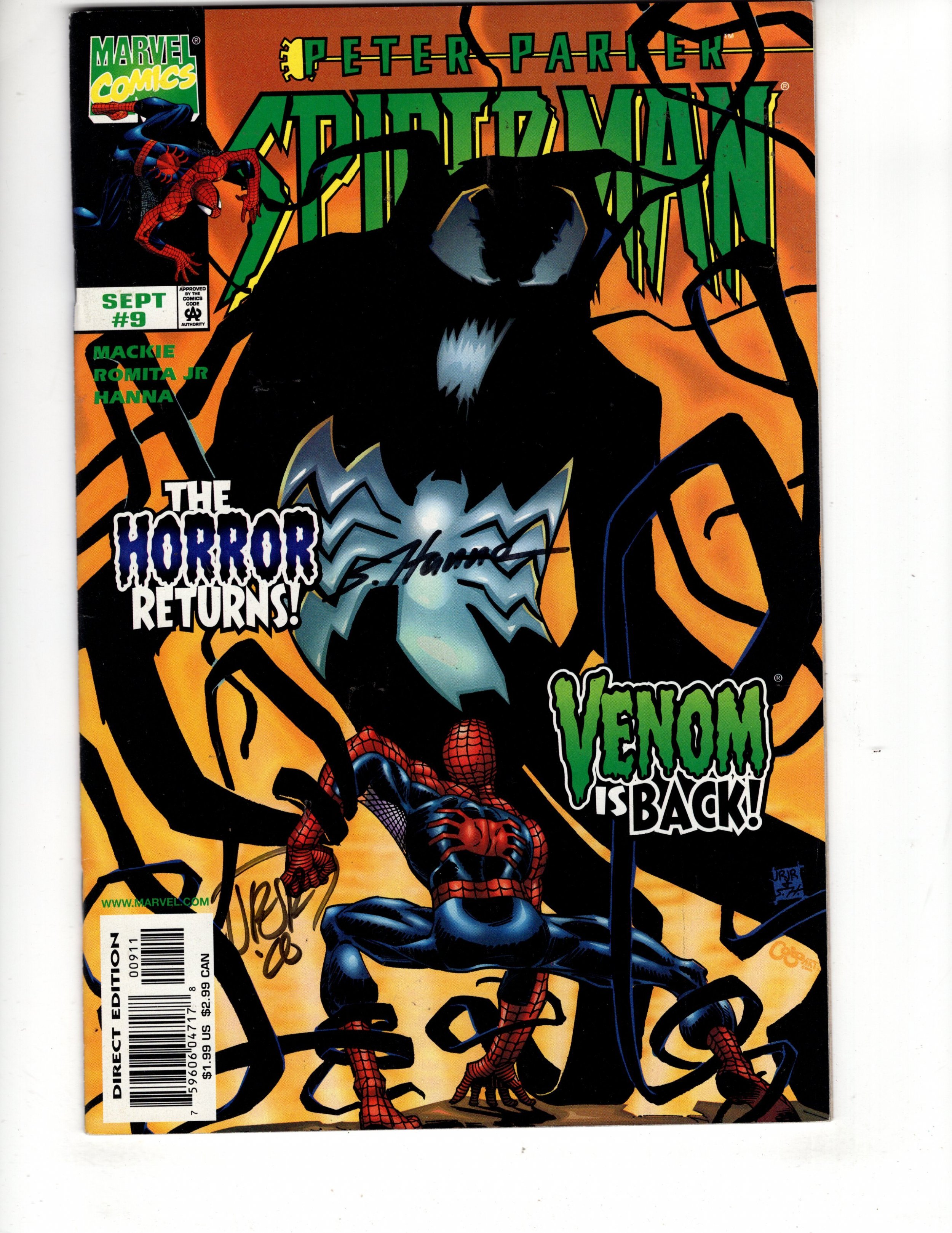 PETER PARKER SPIDER=MAN #9 Signed By Artist VENOM Appearance ID#043