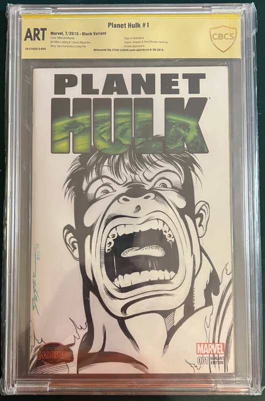 Planet Hulk #1 2015 Steve Geiger Hulk Sketch CBCS Slab Art GB02