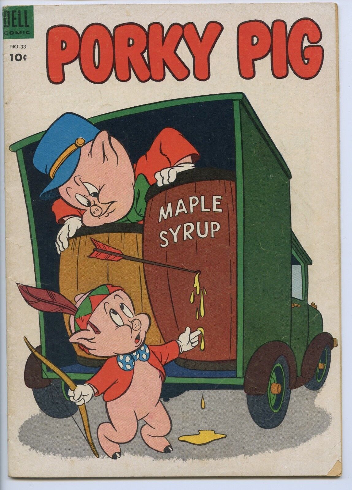 PORKY PIG #33 - Dell - Sylvester style="text-align:center" src="" border="0" align="center" style="text-decoration:none" href="" target="_blank" src="" border="0" height="23px" valign="middle" align="center" face="arial" size="2" href="" target="_blank" Store src="" border="0" href="" target="_blank" src="" border="0" DESCRIPTION:This very nice, unrestored copy is complete, fully readable and has both covers attached. The book has good cover gloss, a tight spine and off white pages. Porky Pig stories with appearance by Sylvester. The book is sent in a mylar sleeve with backing board. Condition is a very conservatively graded 3.0, G-VG.SHIPPING INFORMATION:Combine our auctions and $ave on shipping!Please remember that Media Rate may take up to 4 weeks delivery.FEDEX services available.Nevada residents, please add sales tax.We accept PayPal, MasterCard, Visa, Discover, American Express.NOTES AND FINE PRINT: Welcome to Redbeard's Book Den! For most that have collected comic books for the last 30 years, you have probably heard of us. Redbeard's founder and current owner is Ron Pussell (aka Redbeard), senior Overstreet Price Guide consultant since 1980.REDBEARD'S BOOK DENPO Box 217Crystal Bay, NV 89402-0217 _gsrx_vers_837 (GS 7.0.15 (837)) Track Page Views WithAuctiva's FREE Counter