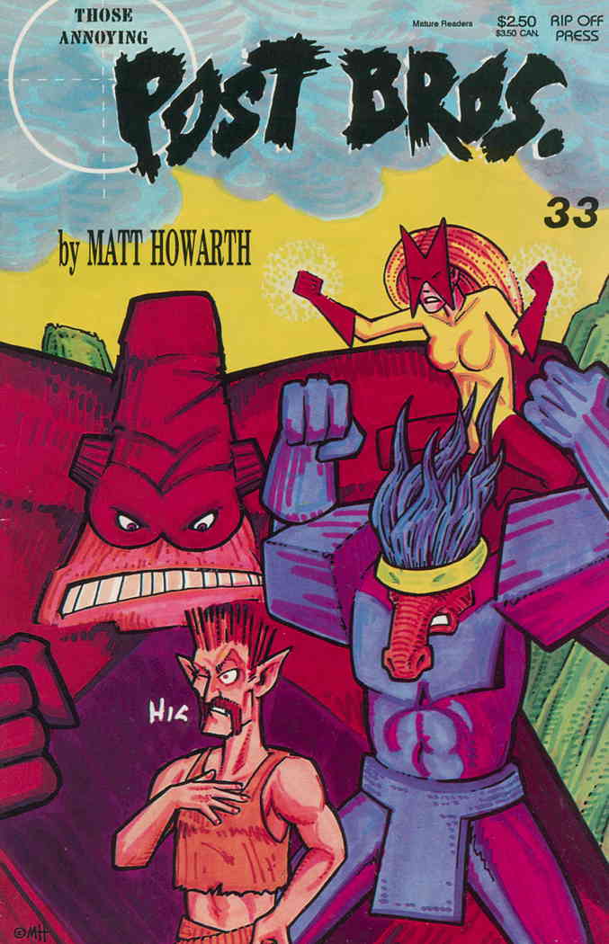 Item: Post Brothers #33 | Publisher: Rip Off | Cover Date: 1993 | Writer: Matt Howarth | Artist: Matt Howarth | Storylines: Distorion for All | Notes: B&W; Listed as Those Annoying Post Brothers | With Economy shipp ... Read More