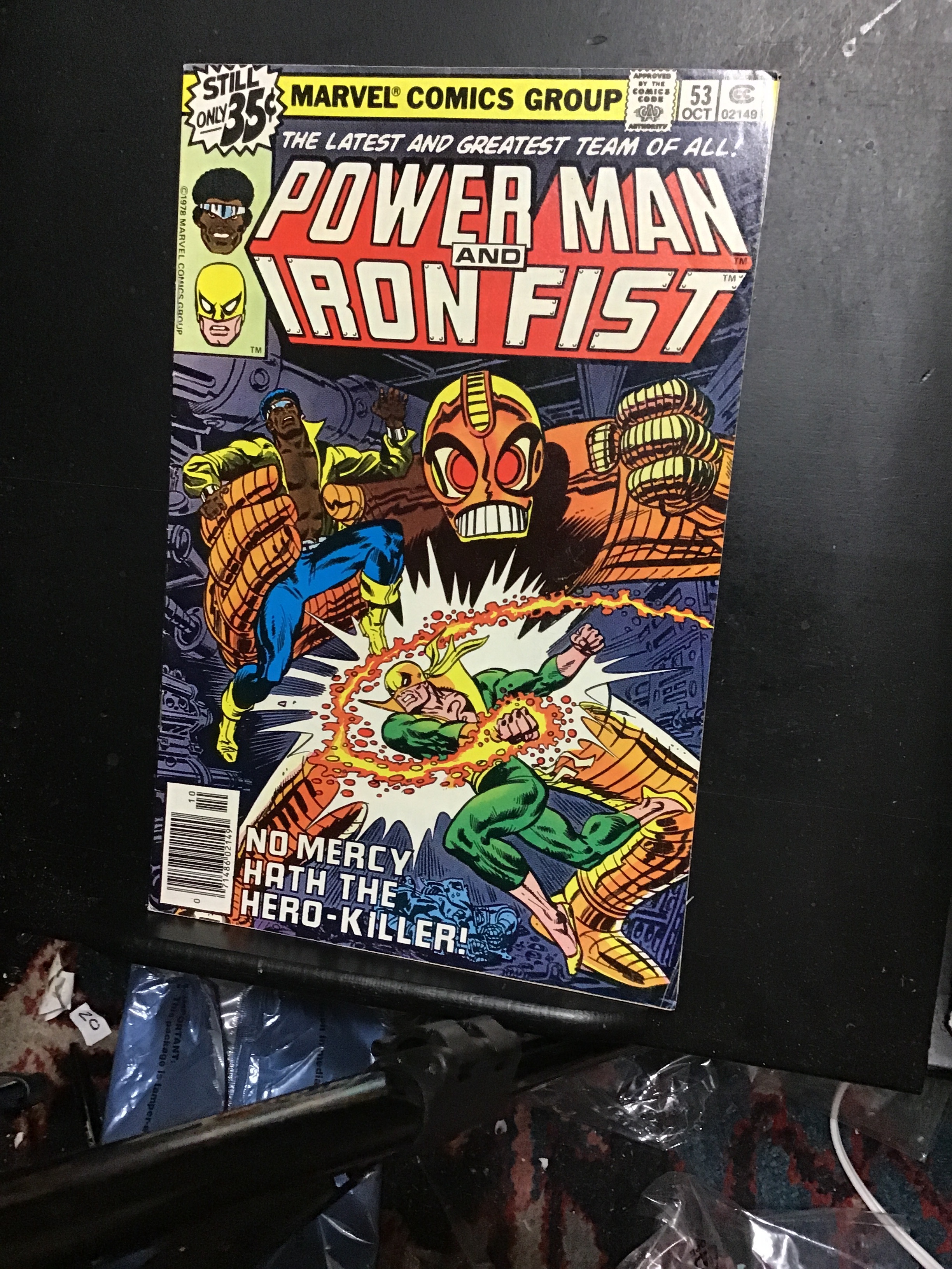 Power Man and Iron Fist #53 (1978) This book has deep rich color and very nice eye-appeal on this all time classic PowerMan and iron fist cover! With light-cream pages and white interior covers. We have adjusted the ... Read More