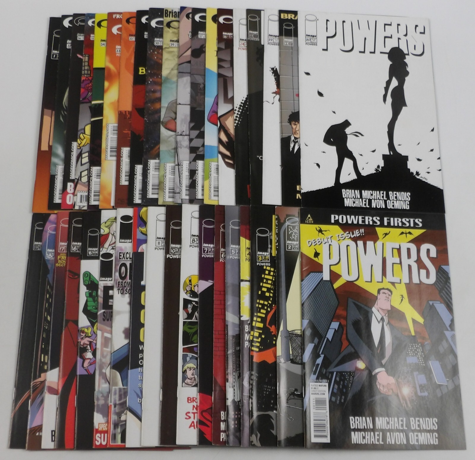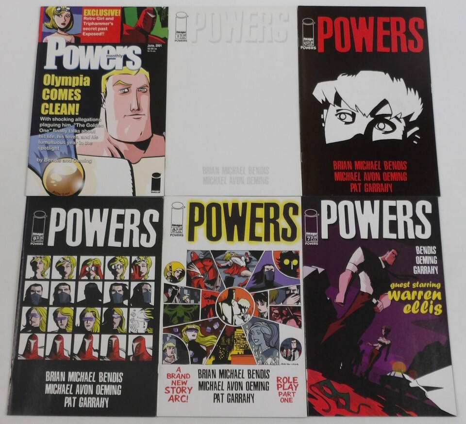 Powers #1-37 is published by Image. Written by Brian Michael Bendis. Illustrated by Michael Avon Oeming. Comic book setSeller Information