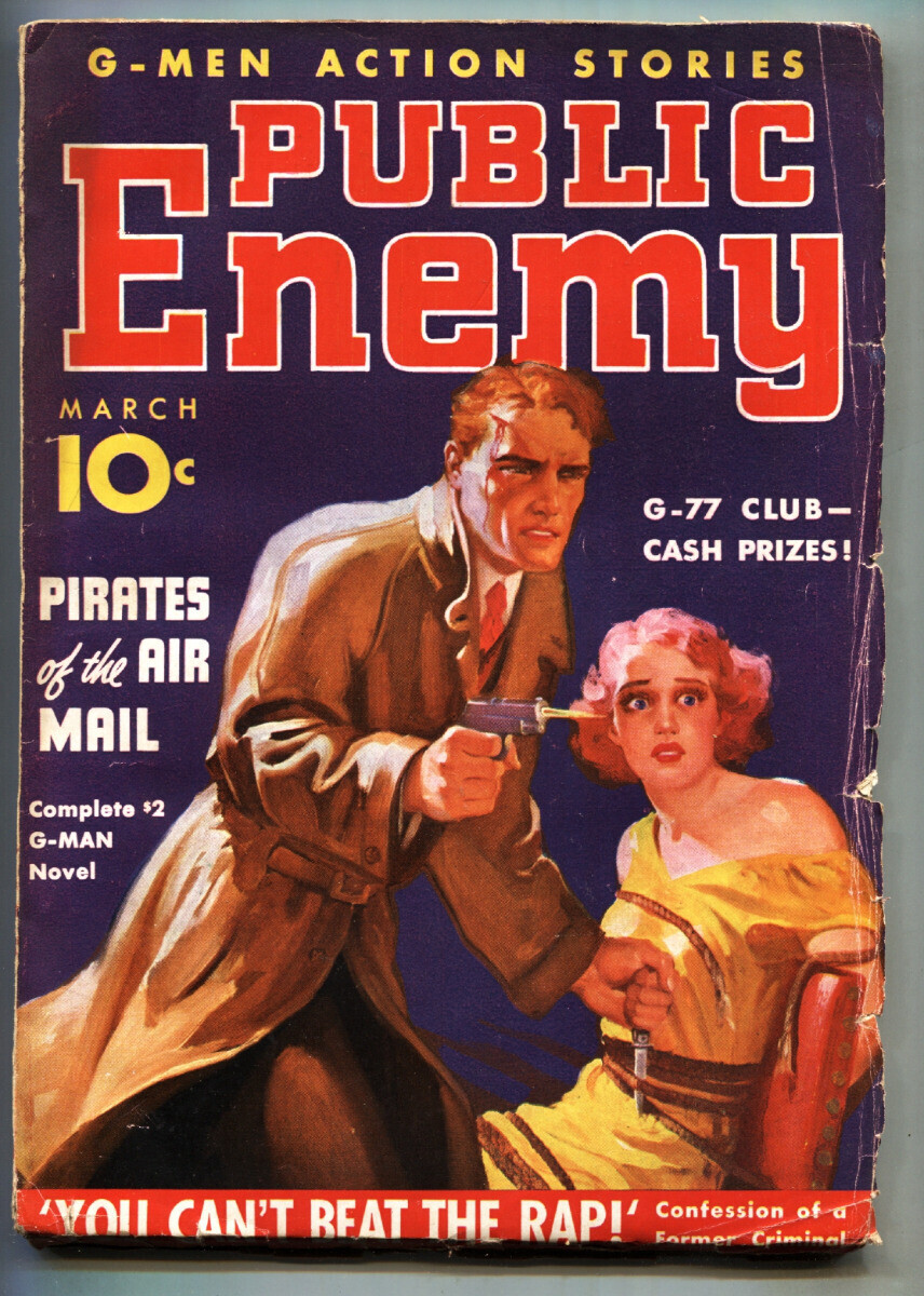 PUBLIC ENEMY 1936 March Hero Pulp Magazine-Hugh B. Cave