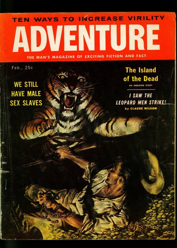 PULP: Adventure Pulp Magazine February 1957- Tiger cover- Arthur C Clarke- VG