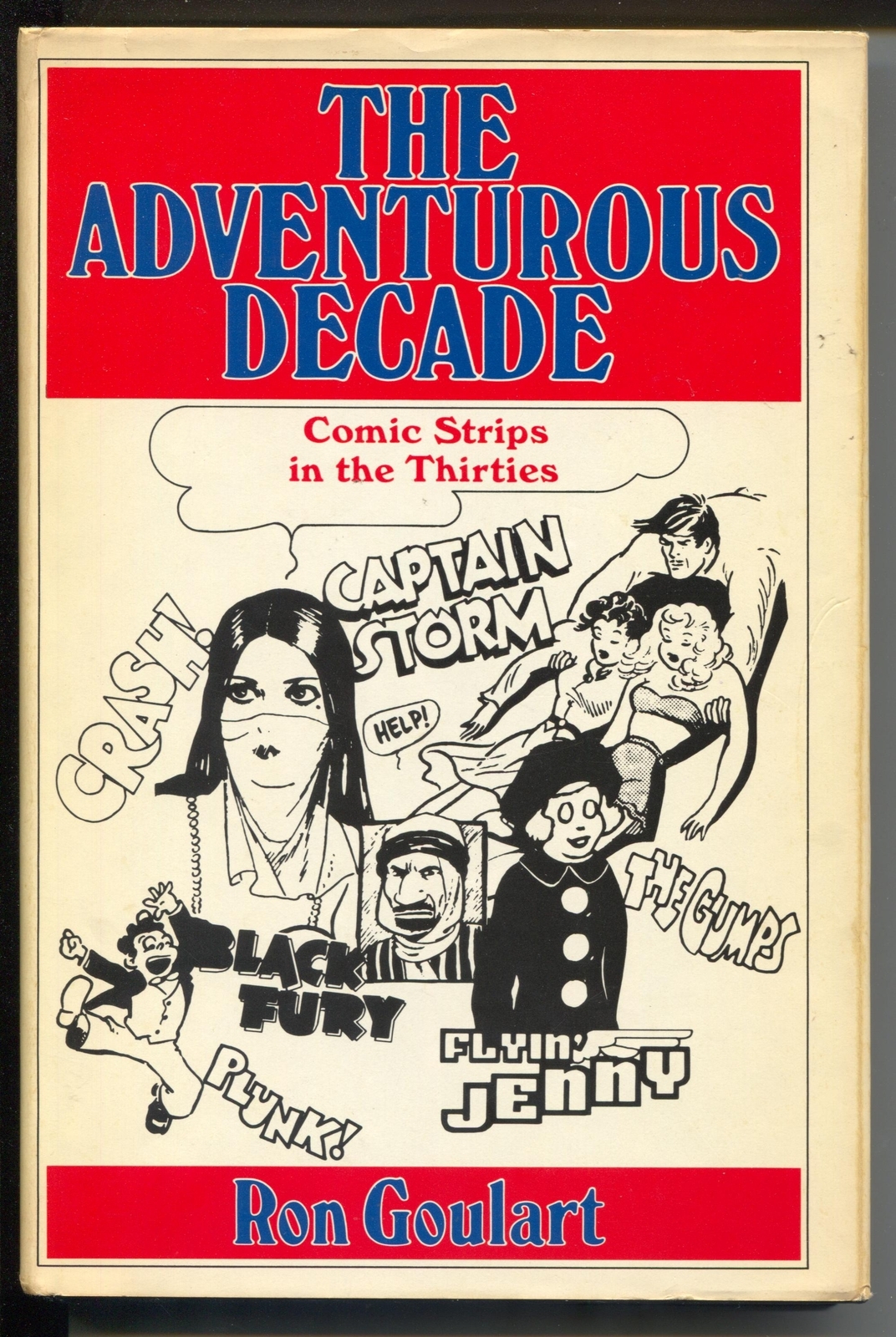 Adventurous Decade 1975- hardback-adventure newspaper comic strips-1930's-FN- -by Ron Goulart -Story of adventure newspaper comic strips of the 1930's -Over 50 illustrations -Tarzan, Buck Rogers, Flash Gordon, Don Winslow -Bronc Peeler, Black Fury, Spirit, Red Knight -Scorchy Smith, Fu Man Chu, Capt Easy and others -Hard back book in dust jacket -A couple pages have pen marks -Top item for fans, collectors, and historians of newspaper art!! Grade: FN- SKU: MEN18-069