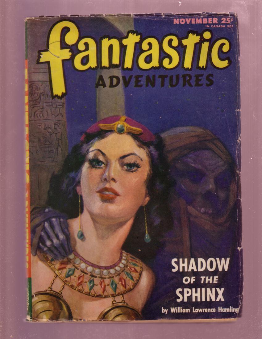 Fantastic adventures-nov 1946-horror pulp-st john cover vg shadow of the sphinx - egyptology story, horror, sci-fi, cover art by j allen st john. Grade: vg sku: do-35-008