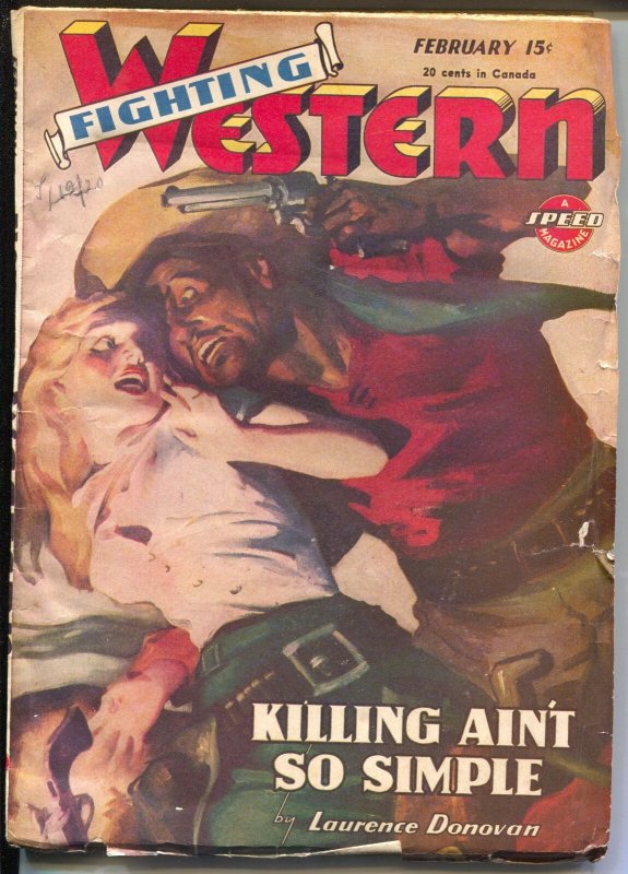 PULP: Fighting Western #1 2/1945-Trojan-GGA cover-violent-post "Spicy" title...
