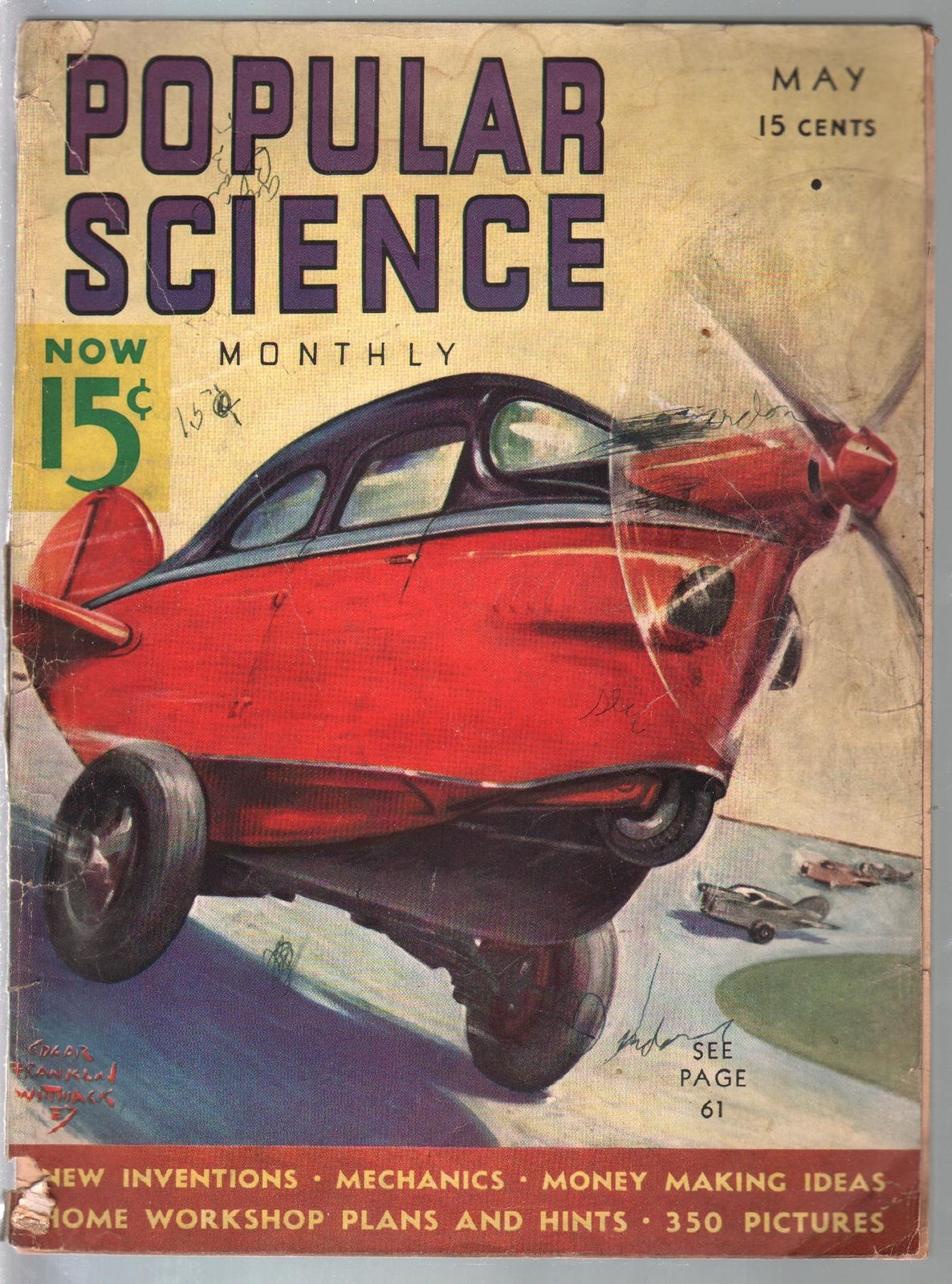 Popular Science 5/1937-Wittmack cover-giant movie sets-G -Futuristic cover by Edgar Franklin Wittmack -Behind the scenes at giant movie sets -Historic and unique -Pulp magazine format Grade: G SKU: U2-19-143