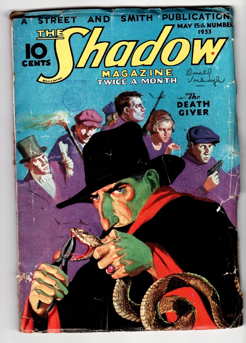 PULP: SHADOW 1933 May 15 Rattlesnake cover-STREET AND SMITH-RARE PULP vg