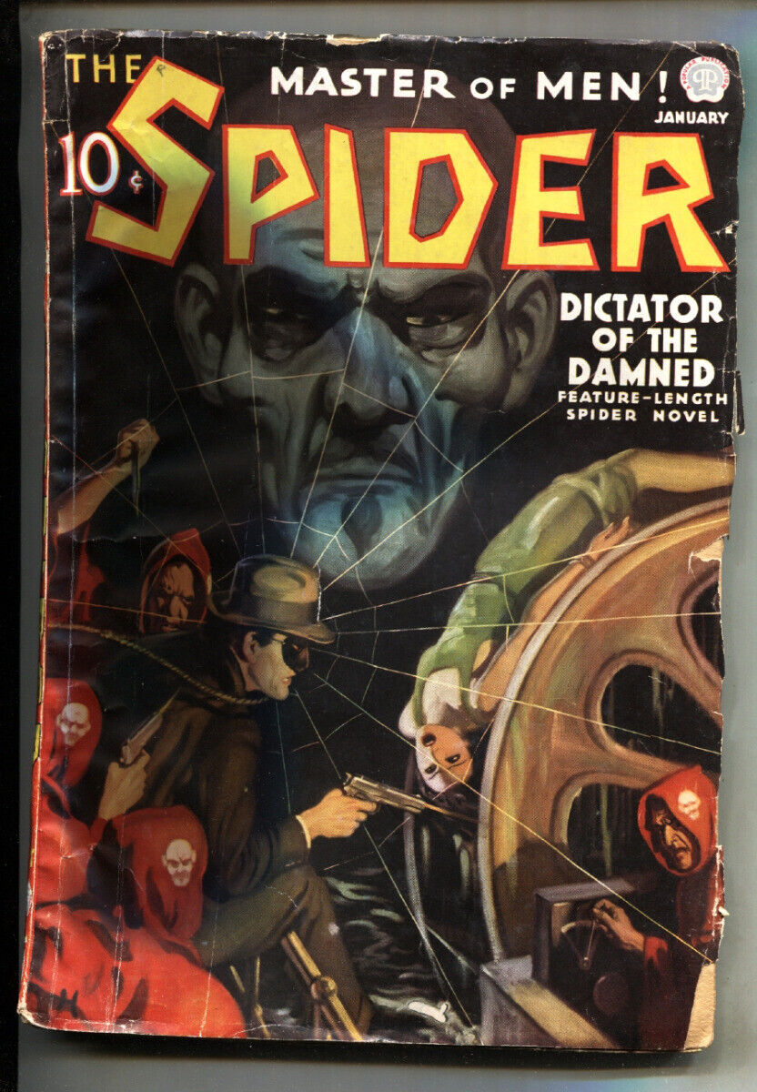 Condition: Condition is G/VG . Please see item description for more information. Grade: G/VG SPIDER 1/1937-POPULAR PUBS-JOHN HOWITT-weird menace-Pulp Magazine -DICTATOR OF THE DAMNED by Grant Stockbridge. -Spider ... Read More