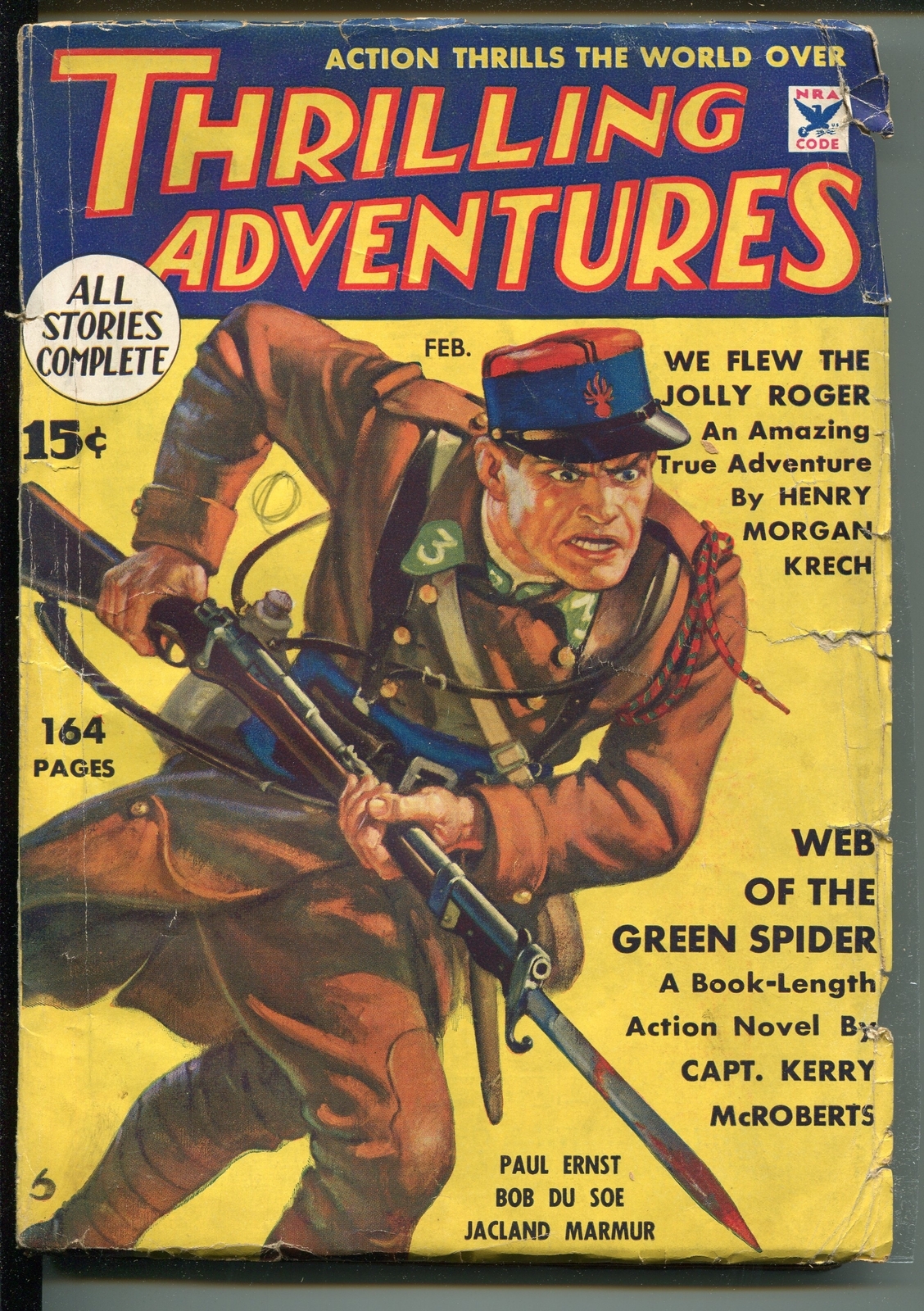 Thrilling adventures 02/1935-thrilling-foreign legion-capt kerry mcroberts-vg -foreign legion cover -story by capt kerry mcroberts, was this a hidden pen name for a famous author? -rare grade: vg sku: ck43-037