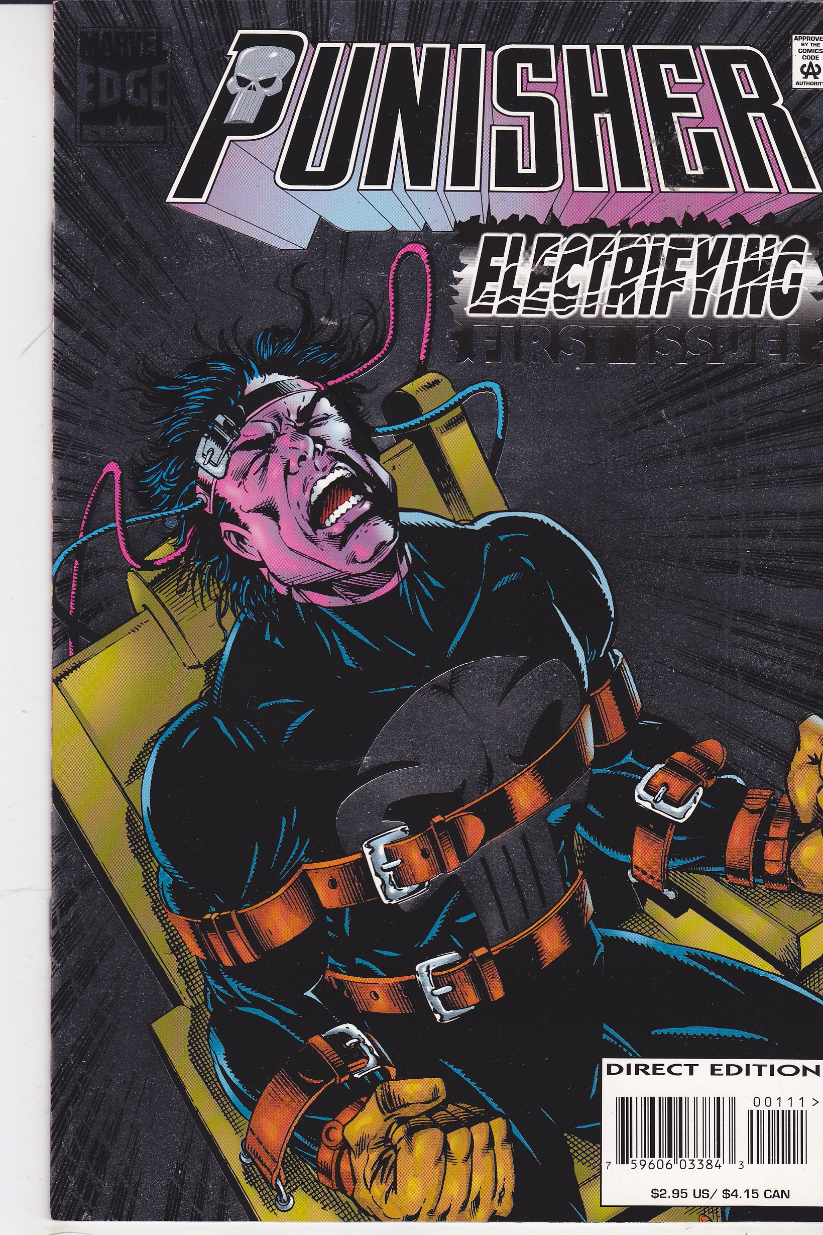 Punisher #1 by Marvel Comics copyright 1995. I have graded the comic book, using the Overstreet Grading Guide, at FINE+ with the following defects: Light stress marks along the spine. The corners are rounded. There is some yellowing of the pagesSeller Information