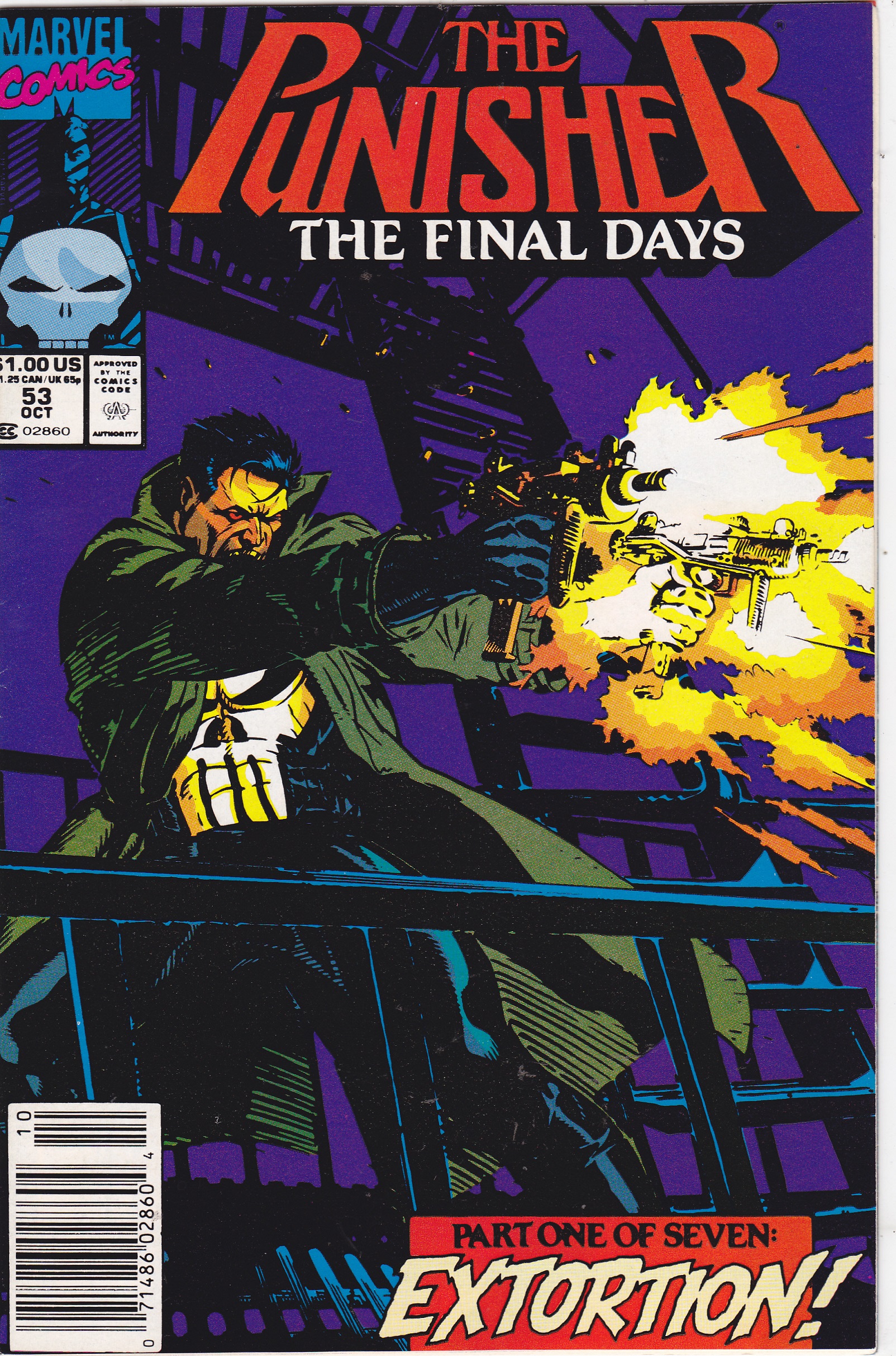 Punisher #53 by Marvel Comics copyright 1991. I have graded the comic book, using the Overstreet Grading Guide, at FINE/VERY FINE with the following defects: Light stress marks along the spine. The corners are rounded. There is yellowing of the pagesSeller Information