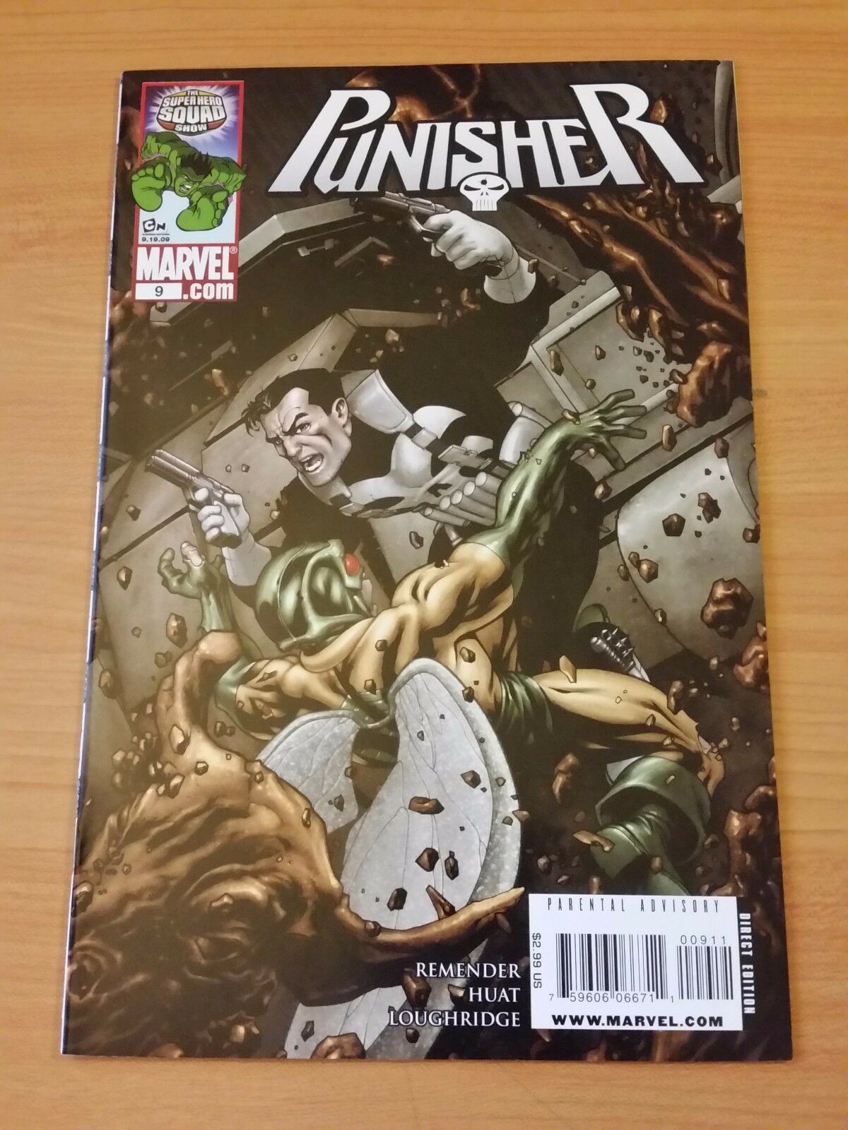 Item DescriptionPunisher #9Publisher: Marvel ComicsPublished: 2009Item Grade/ConditionGrade: NEAR MINTFor more information about this grade and other grades, please see our grading standards.~ AS ALWAYS, WE TAKE HIGH DEFINITION PICTURES OF MOST OF OUR COMICS ~ For more detail use the ZOOM Function and check them out yourself! ~ Pictures are of the EXACT Comics in this listing! ( Near Mint Comics will often have a Stock photo, as they are in near perfect condition a photo is not necessary! )Shipping Info:United States: Orders of all sizes, big and small ship for a flat fee of - $3.50 ~WE LOVE FREE SHIPPING ~ This Standard May not apply to US Orders!~International: We use Calculated Shipping! ~ This insures that you get the LOWEST POSSIBLE COST! ~ Please give us one business day to calculate large orders! As a courtesy to our customers, we insure all orders over 50$ US ~ YOU DONT PAY EXTRA!Delivery TimeWe process and ship all orders within 1 business days. Once shipped, estimated U.S. transit time is 2-10 business days; international 14-21 business days.(Orders placed on Friday afternoon as well as weekends will be shipped the next business day as we do not ship on the weekends).PackingOmnomax Traders has mastered packing to ensure our orders of a "damage-free transport."Using the following methods, we have seen a nearly perfect 99% success rate for undamaged comics!Here is how our orders ship:Orders of 1-10 items:Bagged AND Boarded ( If Comic value is 10$ or More )Tightly secured between 2 stiff pieces of corrugated cardboardSealed on all 4 sides with strong packing tape (Items doesn't even wiggle).Protected in a large mailing envelope Orders of 10 and more:All items are bagged, and bottom item is in a board for extra protection of other items.All items are then placed together in a heavy bag. Tons of heavy packing paper &/Or Bubblewrap shields the items.Durable boxes hold the items*Now this method is nearly perfect! however we have seen damage happen to items ( only once or twice a year ) ~ this is often due to bad handling by the postal service. Always remember to contact us if this happens! we are committed to quality service!*Offers History