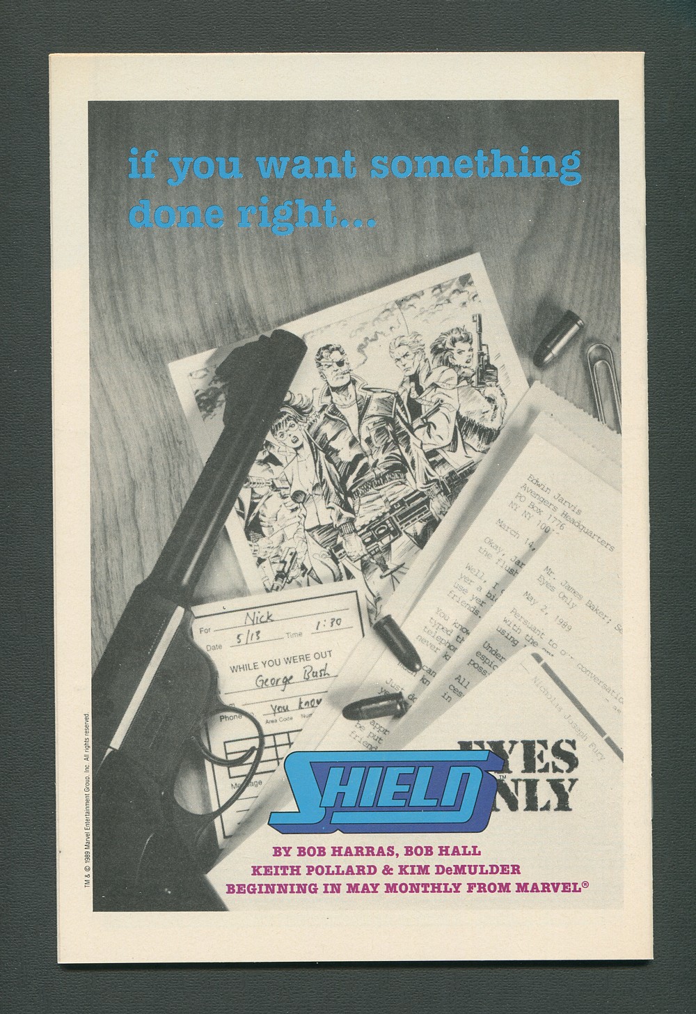 Cover art by Jim Lee and Carl Potts. Second Shot, script by Carl Potts, pencils by Jim Lee, inks by Scott Williams; Punisher and Microchip use a tank to chase down the Sniper, who's making off with an Apache helicopter. Punisher's Arsenal profile by Eliot R. Brown (E)
