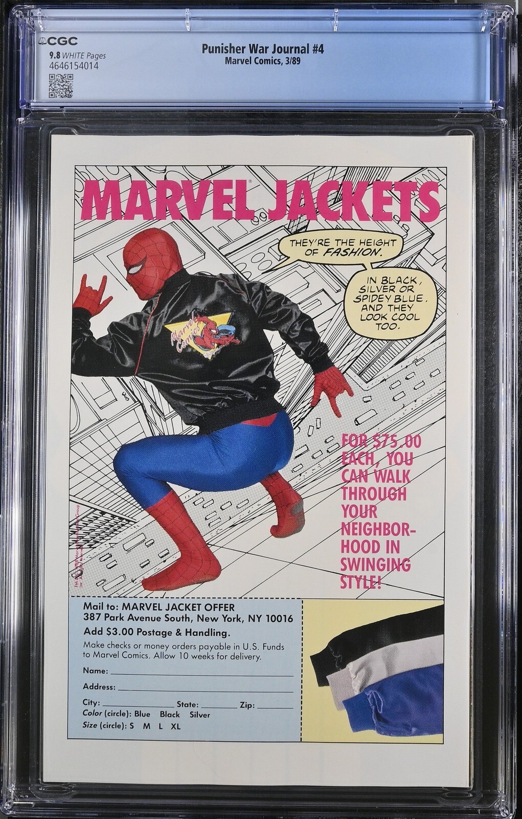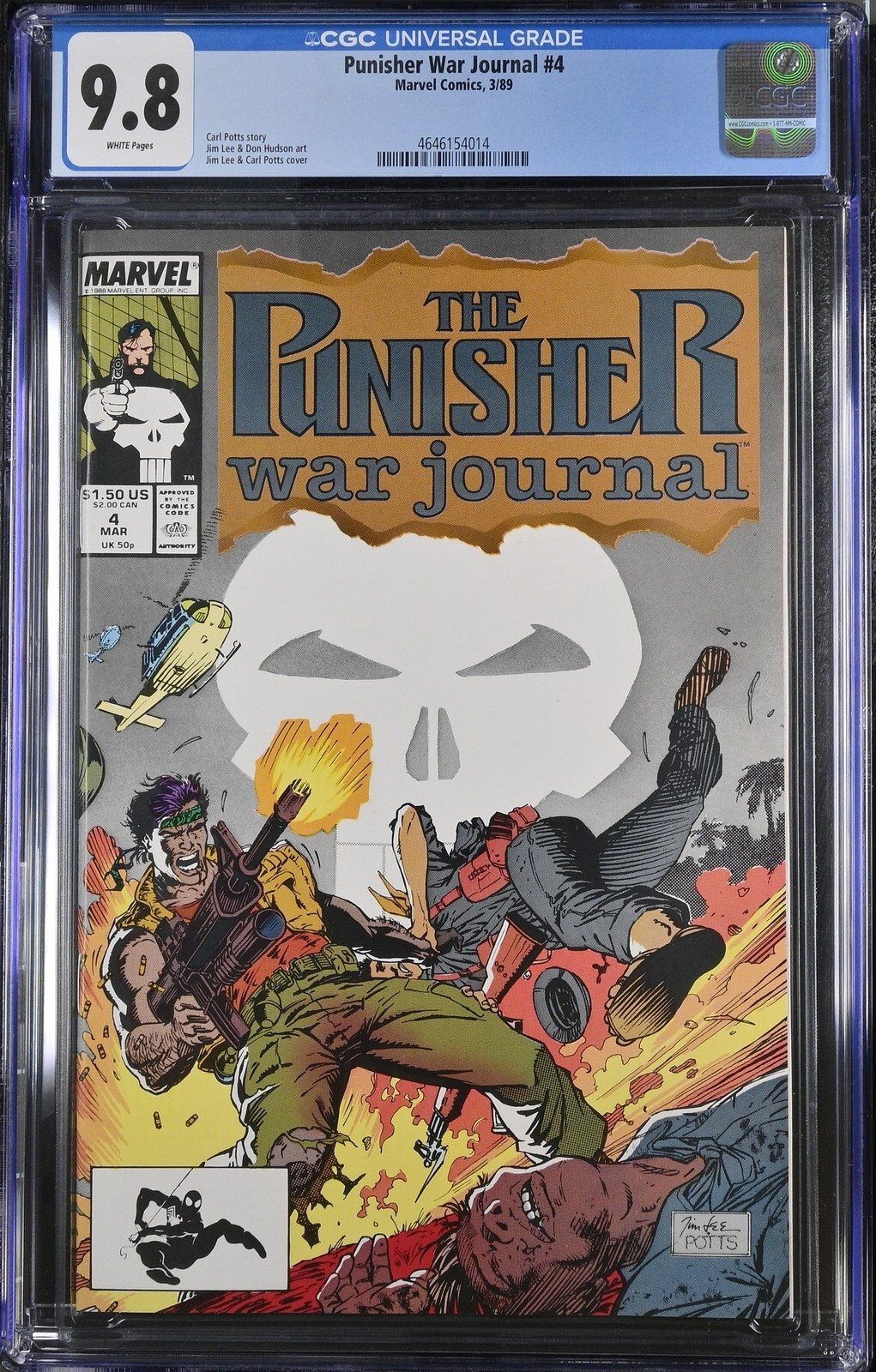 Punisher War Journal #4 from 3/89 offers a glimpse into the era's iconic storytelling. This issue is a must-have for collectors. Add this CGC 9.8 graded comic to your collection today!Attribute DetailsCertNumber 4646154014DisplayGrade 9.8GradeCategory ModernPageQuality WHITEArtComments Carl Potts story, Jim Lee & Don Hudson art, Jim Lee & Carl Potts coverCollectibleID 19876CollectibleType CTitle Punisher War JournalIssue 4IssueDate 3/89Publisher Marvel ComicsYear 1989PopulationAtGrade 45population_5_0 1population_6_5 1population_7_0 1population_7_5 2population_8_0 2population_8_5 3population_9_0 4population_9_2 4population_9_4 11population_9_6 14population_9_8 45Sales History