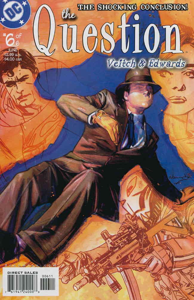 Item: Question, The (2nd Series) #6 | Publisher: DC | Cover Date: June 2005 | Writer: Rick Veitch | Artist: Tommy Lee Edwards | Cover Artist: Tommy Lee Edwards | Appearances: Minos, Superman, Subterraneans | Storylines: Devil’s in the Details, Part 6; Falling In Place | Notes: Versus Minos & Subterraneans | With Economy shipping, each additional comic ships for just 50 cents more to customers in the USA. This listing contains a stock photo and information from ComicBase™ and © Human Computing. The stock photo is for reference only. If you would like to see a photo of the actual item, please message us prior to purchasing.Seller Information