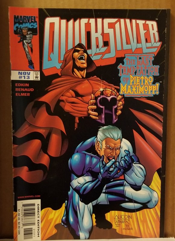Quicksilver #13 by Marvel Comics copyright 1998. I have graded the comic book, using the Overstreet Grading Guide, at FINE/VERY FINE with the following defects: Light stress marks along the spine. The corners are rounded. There is some yellowing of the pages.Seller Information