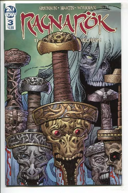 Grade: 9.2 Near Mint-Ragnarok breaking of helheim (2019 idw) #3 cvr a simonson item number: cxwh-f01466 as the great enemies plot to destroy the god of thunder, the last of their ancient foes, thor fights to free slaves laboring in a deadly mine on the rim of helheim, the kingdom of the dead. The recovered ore is being turned into magical sword blades that will enable the despotic ruler of the upper levels of helheim to conquer the dusk lands with fire and blood.