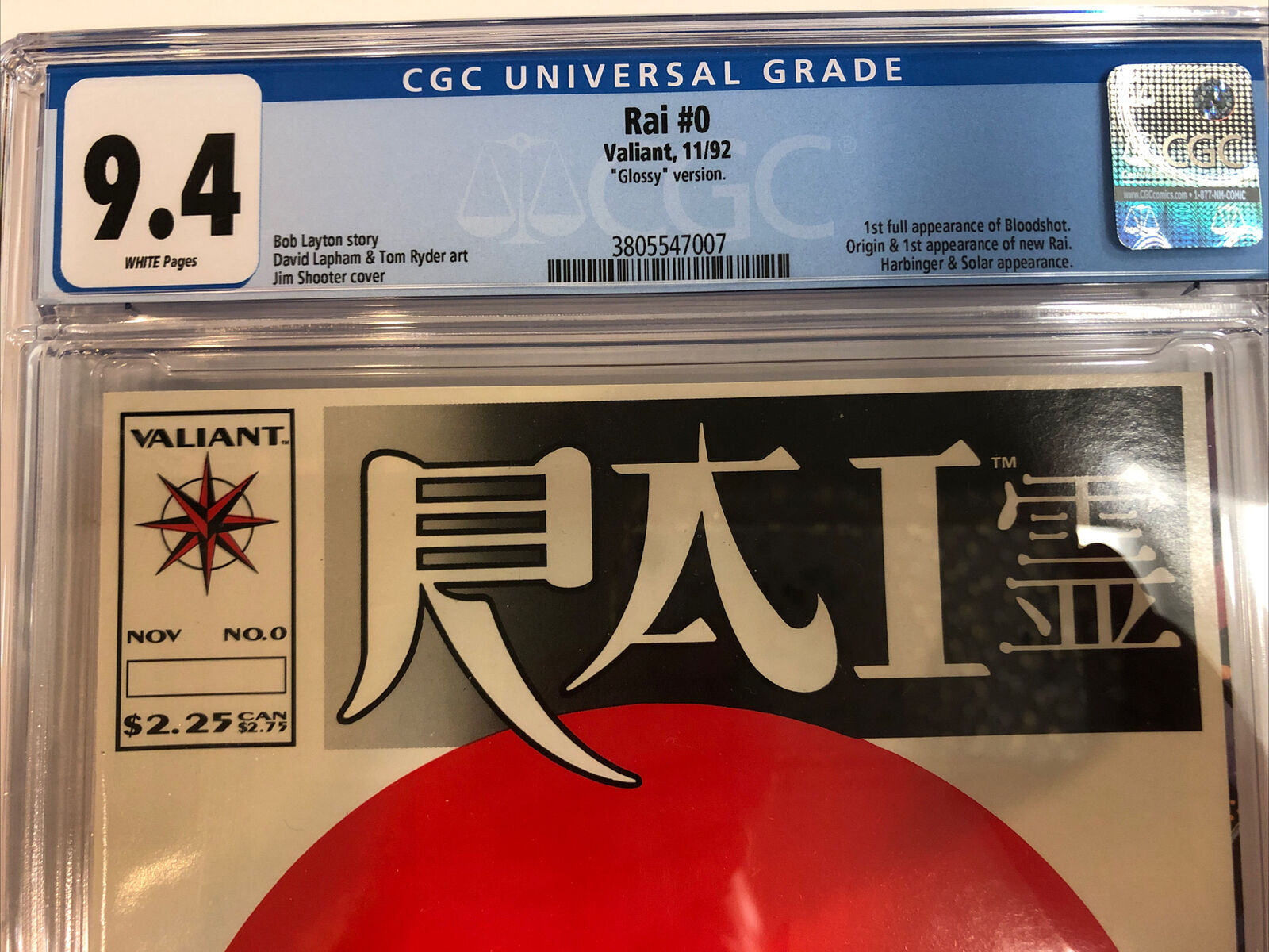 Rai (1992) # 0 (CGC 9.4) Glossy Version | 1st Bloodshot | Never Pressed