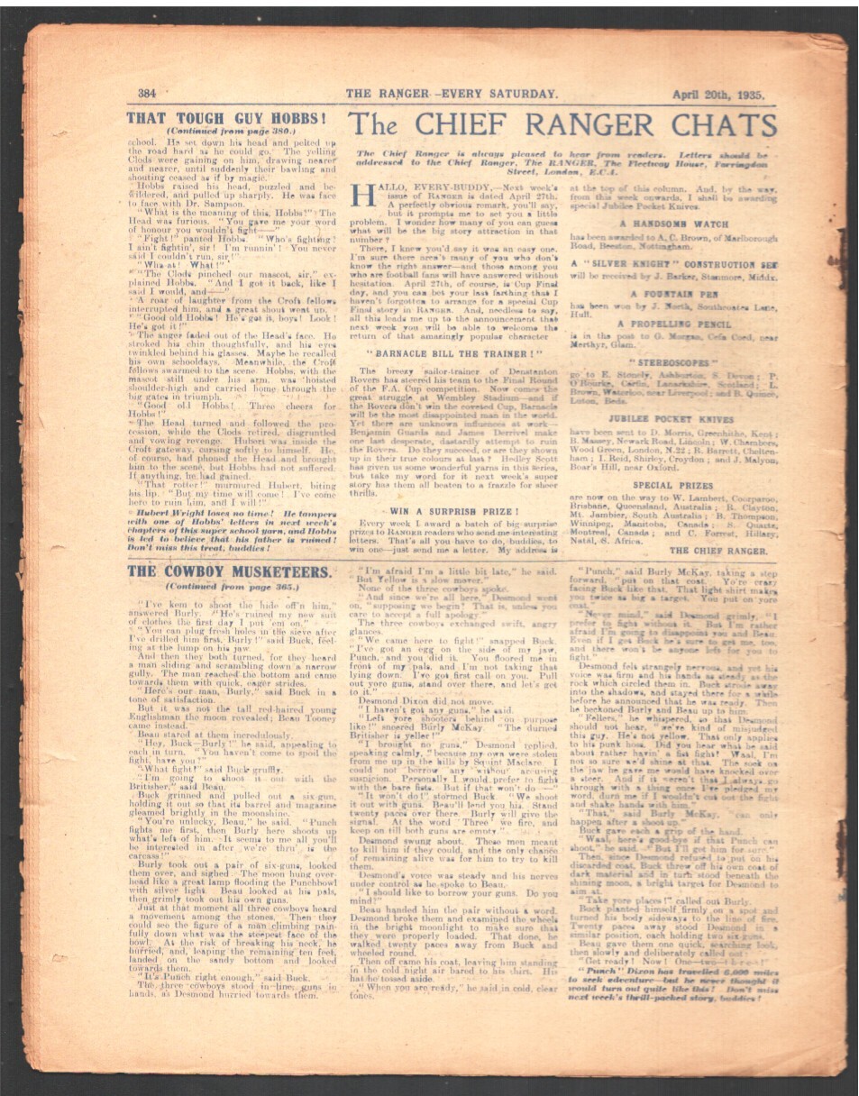 Ranger 4/20/1935-Cowboy Musketeers-Buster Brown-Cadet -Cowboy Musketeers -Buster Brown-Cadet -Published in U.K. -Staple rust TITLE: Ranger ISSUE: N/A GRADE: VG- SKU: LT-03-058