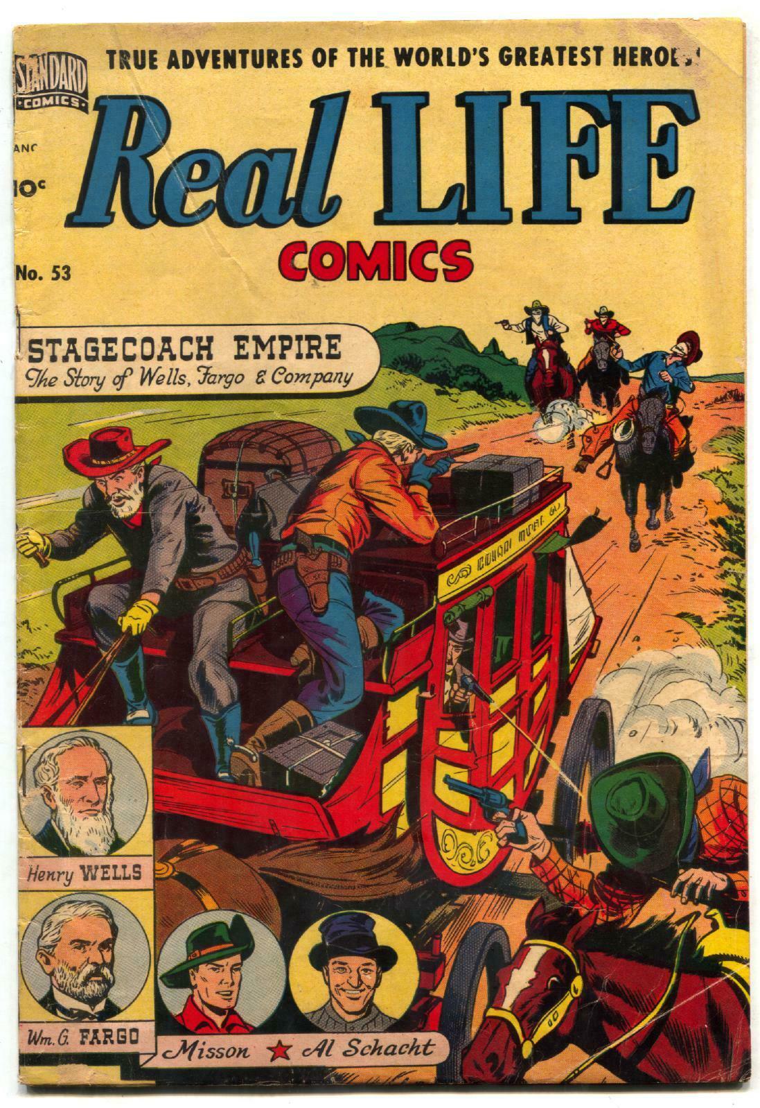 Real Life Issue: 53 / Year: 1950 Condition: VG-Story of Wells Fargo, with art by Severin and Elder -Sci-fi story by Severin and Elder -George Tuska Publisher: StandardSku: DO-47-073 Over 100,000 mail orders processed! Buy with confidence. Track Page Views WithAuctiva's FREE Counter
