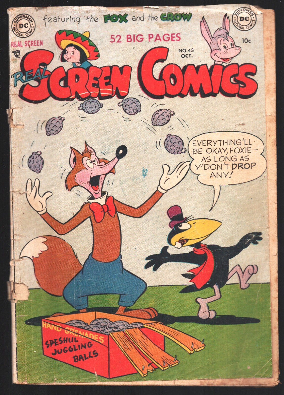 Real Screen #43 1949-DC-Hand grenade cover-Fox and Crow-Cover detached