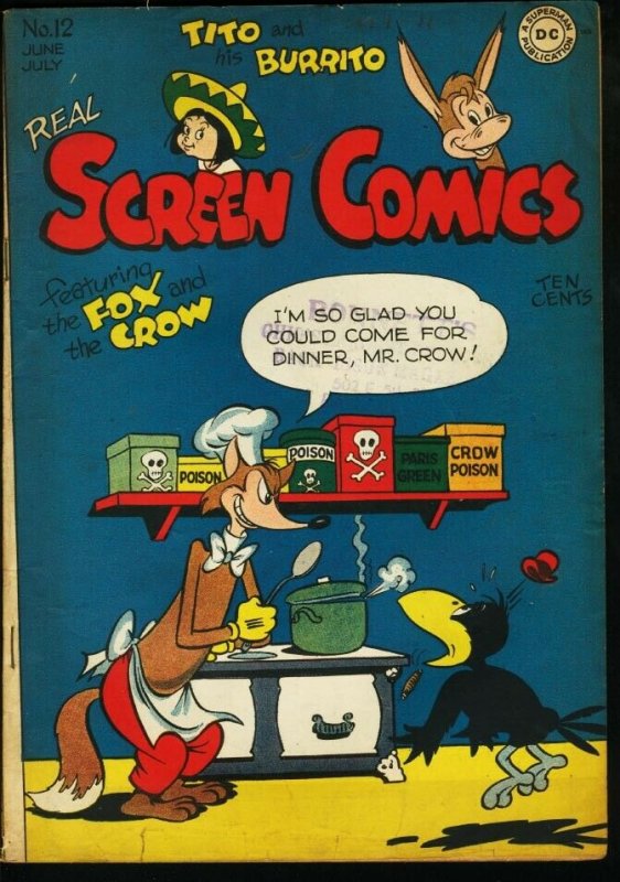 REAL SCREEN COMICS #12-FOX AND CROW-TITO AND BURRITO VG/FN