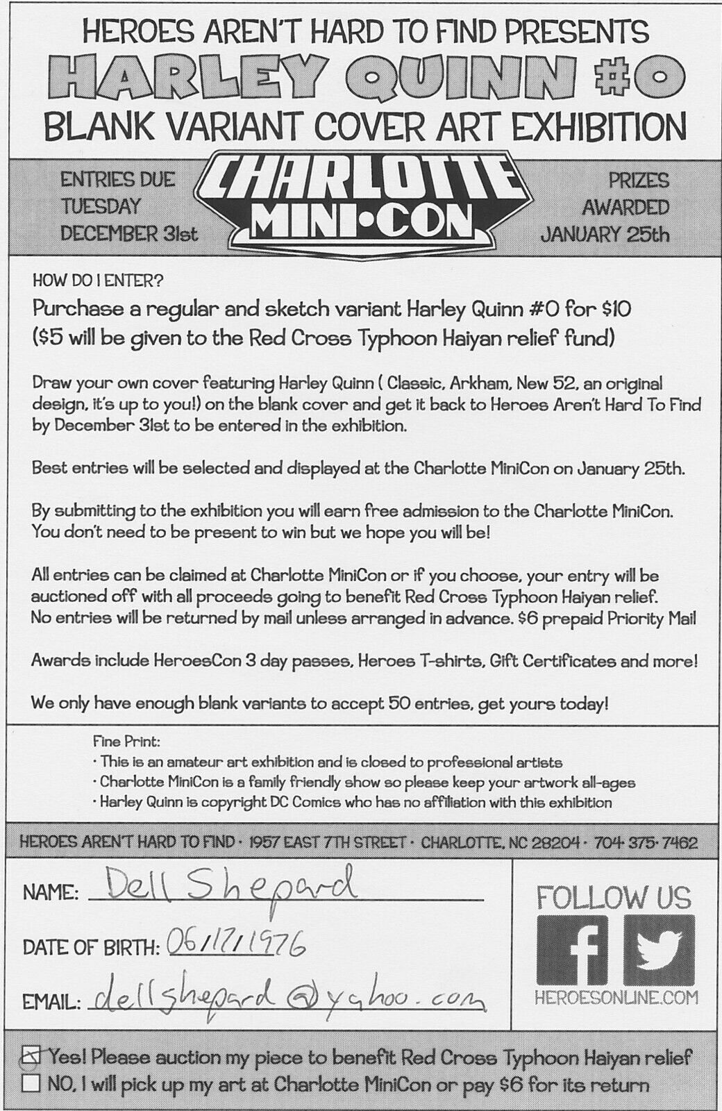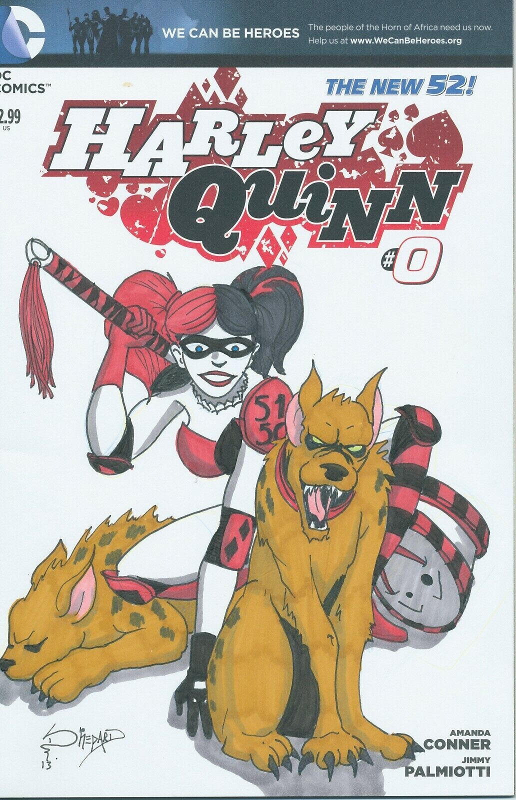 RED CROSS HARLEY QUINN ART CHARLOTTE MINI CON 2013 SIGNED BY DELL SHEPARD EB200