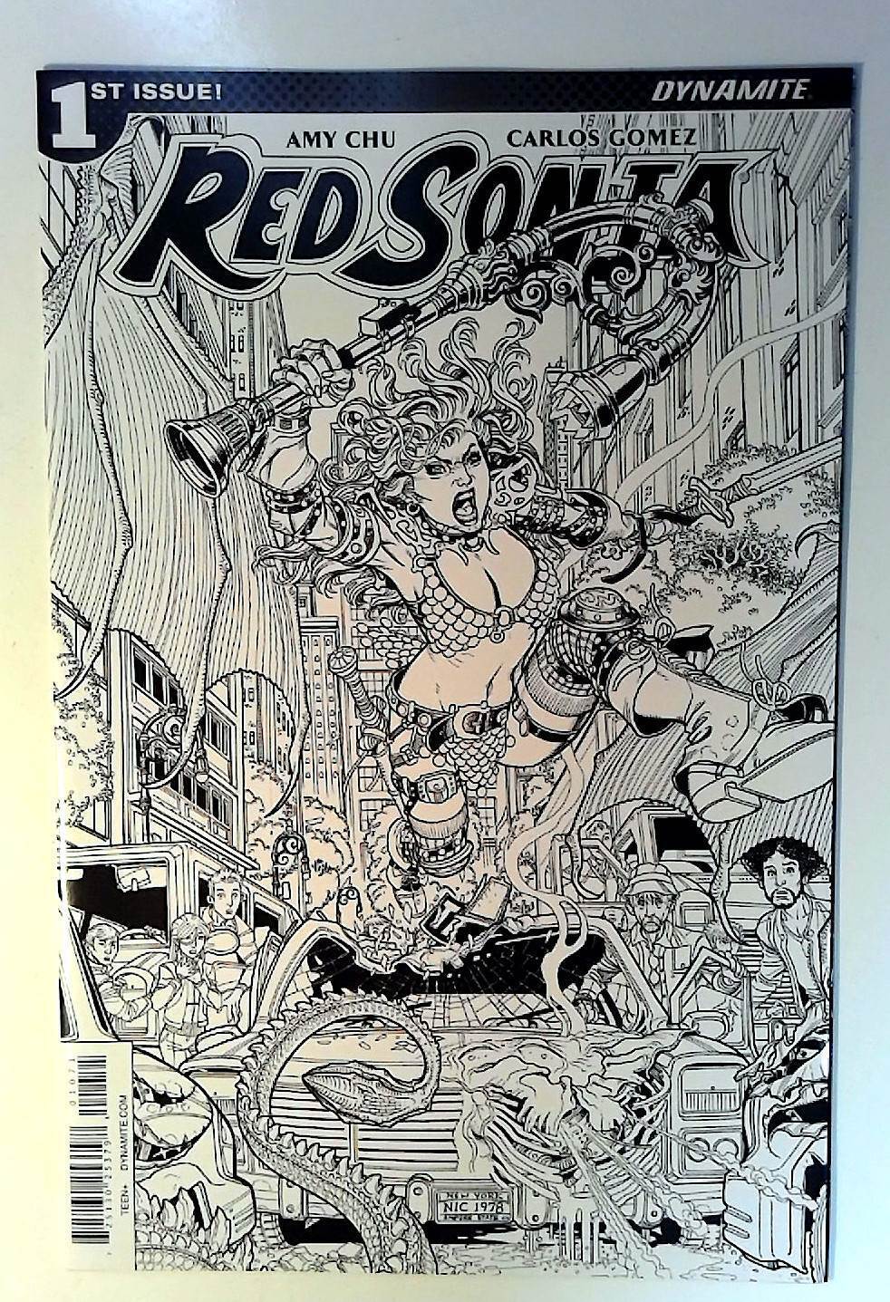 Grade: 9.4 Near MintCosmic-King HomeView All ListingsSee FeedbackAdd to Favorite SellersLeave FeedbackDESCRIPTIONRed Sonja #1g Dynamite Entertainment 2017 9.4 NM Near Mint Condition Modern Age Comic Book Limited 1:10 Incentive Variant 1st PrintingRed Sonja #1 Cover G Retailer Incentive B&W Bradshaw (2017) Limited 1 for 10 Retailer Incentive Variant Cover. Written by Amy Chu. Art by Carlos E. Gomez. Cover by Nick Bradshaw. A new chapter for the Queen of the Hyrkanian Age. Our favorite warrior has faced the toughest of demons, foes and strange magic, but nothing has prepared this 6 ft. tall barbarian for…the modern world. Emerging from a subway construction site in New York City, confronted by cops and guns, Sonja fights for her survival in a new and hostile world. Is she here by accident or by design? Who brought her here, and why? 32 pages, full color. Rated T+Increase your comic book collection and enjoy reading this comic book featuring stories from Dynamite Entertainment.Our newer comic books for sale are usually* high grade, unread, mostly flat, and glossy dealer back stock. Expect a deterioration in condition for older comics.*See the listing image(s) to get a better evaluation of the condition. Gradings, if provided, are of our personal opinion. You should NOT buy solely based on the grade.PAYMENT DETAILSPay with Google Pay, PayPal, PayPal Credit, debit card, or most credit cards.SHIPPING DETAILSOrders ships out the same day or next business day. The average shipping delivery time range from 2 to 9 days. Using Economy Shipping options which is usually USPS Ground Advantage.SHIPPING PROMOTIONS - Combined Shipping - Cart Items Reduced ShippingPay shipping once with our ongoing comic book flat rate promotion*. You won't pay additional shipping for multi-comic orders bought together in the cart.*Exclusions apply - CGC/Slabbed won't qualify.RETURNS30 days money back guaranteed. Returns accepted and shipping will be paid by the seller.Check Out Our Other ListingsComicsHip Store:Cosmic-King©2024 cosmic-king. All Rights Reserved.