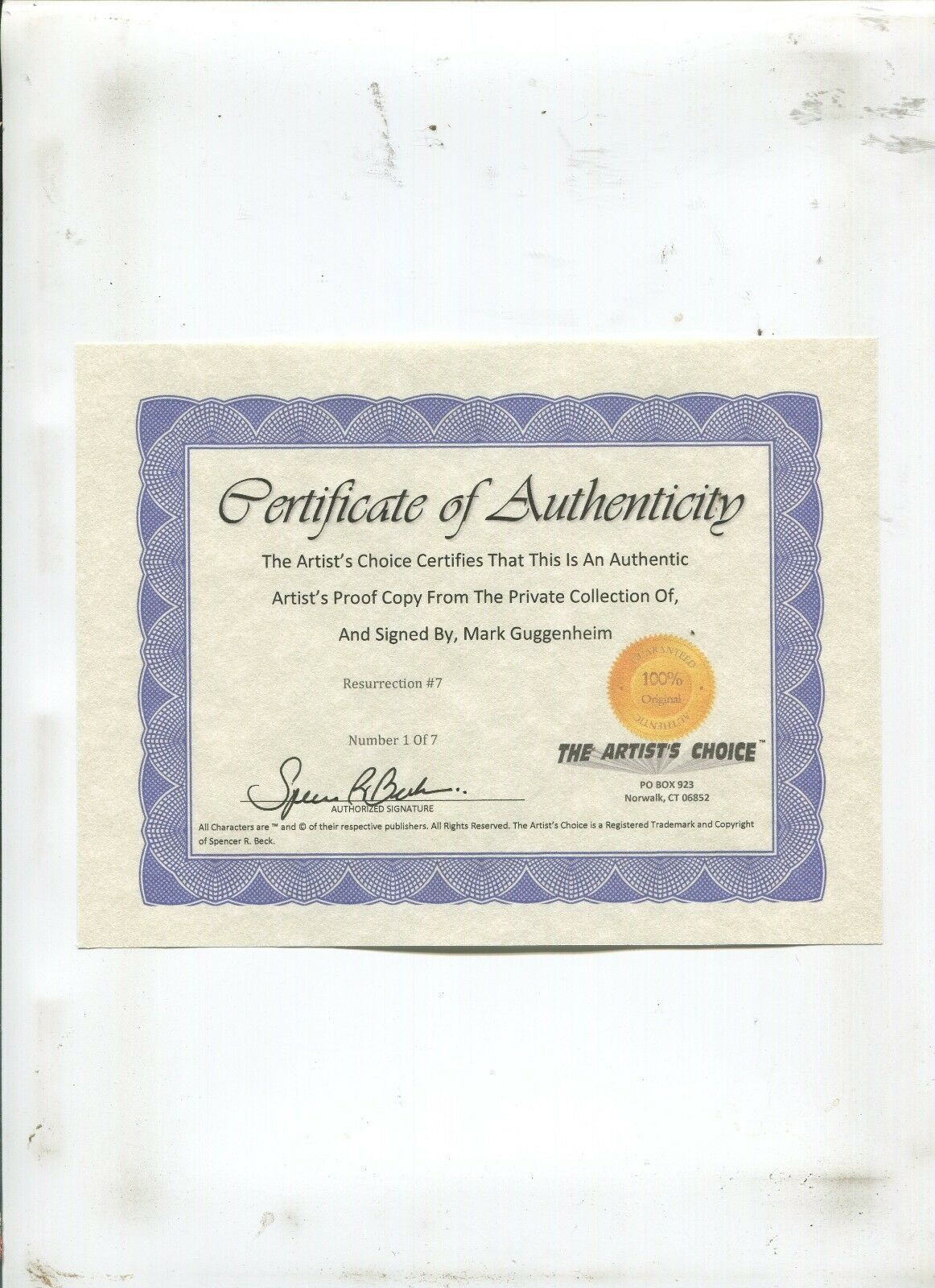 Grade: 9.2 NM- Resurrection v2 #7 - signed by mark guggenheim w/ coa! - (9.2) 2010size: 7" x 10"this item was uploaded by hr.If you have any specific questions or requests, please ask us prior to ordering and we'll ... Read More