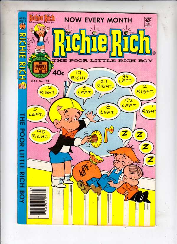 Richie Rich #190 - Richie Rich The Poor Little Rich Boy COVER - Combination Safe There is a small stain at the base of the back cover and a light bend-line at the right side on the front cover. Characters Richie ... Read More