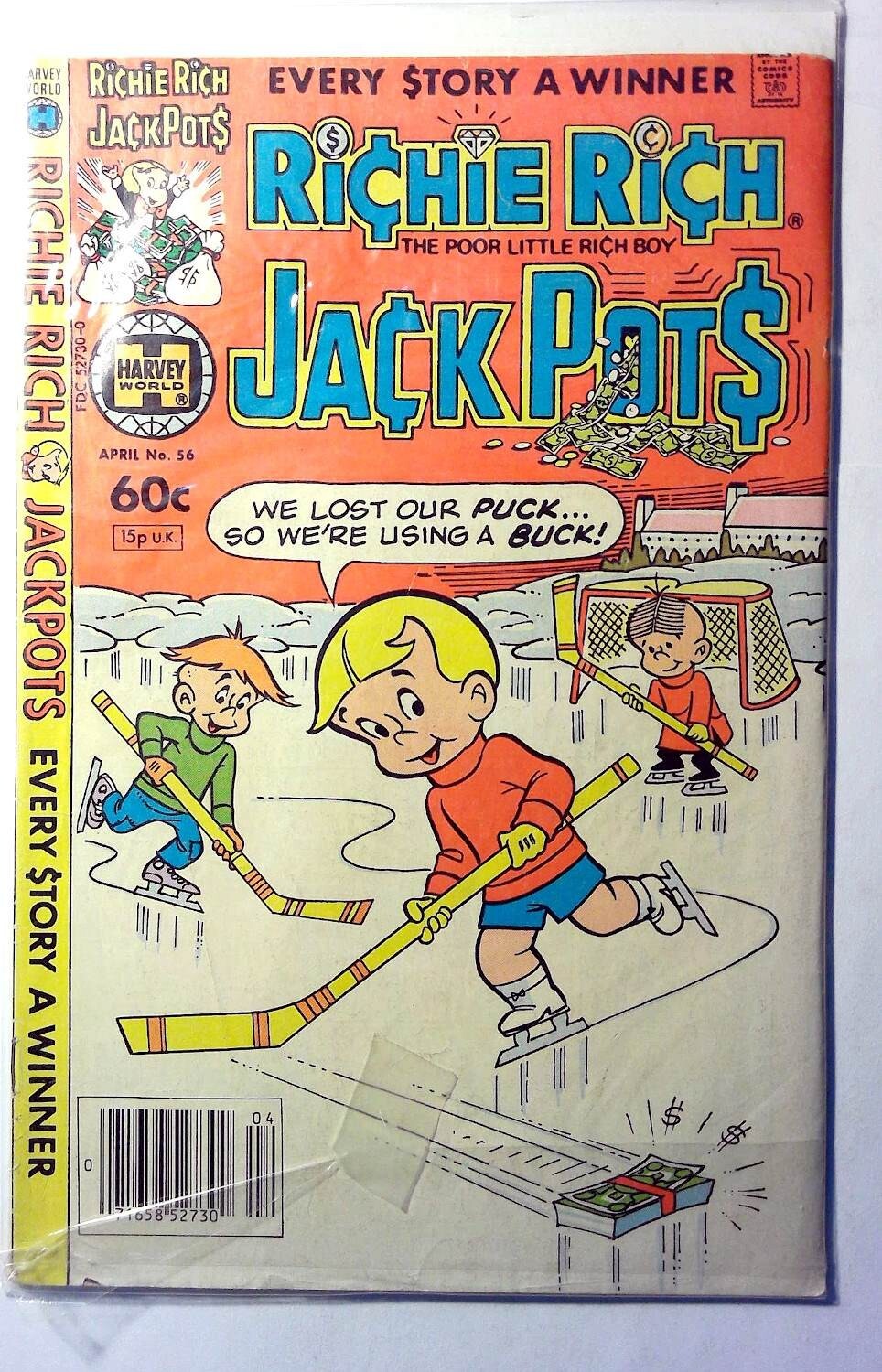 View All ListingsSee FeedbackAdd to Favorite SellersDESCRIPTIONRichie Rich Jackpots #56 Harvey Comics 1982 9.4 NM Near Mint Condition Bronze Age Comic Book 1st PrintingRichie Rich Jackpots #56 (1982) Richie Rich's fortune is both the cause and solution to his comedic misadventures. Inept estate carpenter Mr. Woody goes into real estate and accidentally sells the entire Rich estate. Richie has to think pretty fast to get his house back, in a multi-part story. Mr. Rich's cheating on his diet helps to foil a plot to kidnap Richie. Richie's mean cousin Reggie has a dream about an even worse version of himself. The Selling Game; Selling Himself; Food for Thwart; The Good Tooth Fairy; Reggie and Ultra-Reggie. 36 pages, full color.Increase your comic book collection and enjoy this comic book featuring stories from Harvey Comics.Our newer comic books for sale are usually* high grade, unread, mostly flat, and glossy back stock. Our comics are usually unread back-issues in excellent condition. See the listing image(s) to get a better evaluation of the condition. Grading, if provided, is of our personal opinion.COMBINED SHIPPING PROMOTIONAnd to Cart and Pay shipping only once*. Flat rate shipping cost for multiple item orders.*Highest shipping rate is applied to the order. *Exclusions apply - CGC/Slabbed books ship at a higher tier so the cost is only reduced.BEST OFFER ACCEPTEDOffers are excluded from promotional discounts since they represent your requested cost for purchase. Combined shipping can be expected but may not be applied automatically if you checkout offers/items separately.SHIPPING DETAILSOrders ships out the same or next business day. The average shipping delivery time range from 2 to 7 days. Shipped using economy options which is usually USPS Ground Advantage.PAYMENT DETAILSPay with Google Pay, PayPal, PayPal Credit, debit card, or most credit cards.FREE RETURNS30 days money back guaranteed. Returns accepted and shipping will be paid by the seller.Check Out Our Other ListingsHip Store:Cosmic-King©2026 cosmic-king. All Rights Reserved.