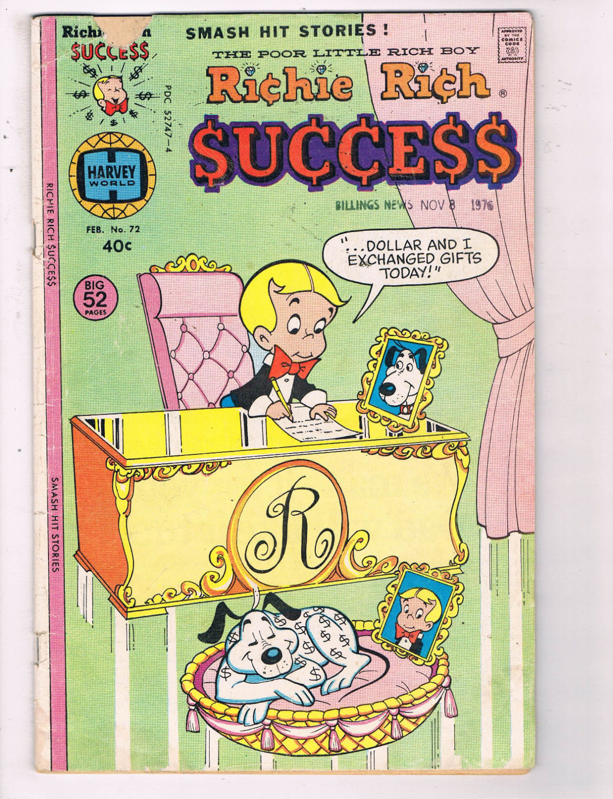 Richie Rich Success #72 VF Harvey World Comic Book Feb DE24