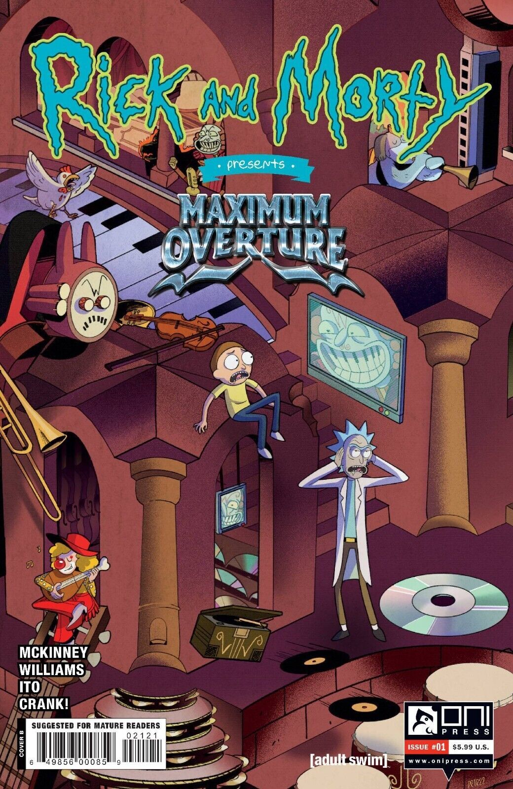 Grade: 9.2 Near Mint- Item Information: (W) Jarrett Williams (A) Leonardo Ito, Crank! (CA) Jarrett Williams, Andrew DalhouseRick and Morty find themselves in the mad composer's clutches and must weather Concerto's ... Read More