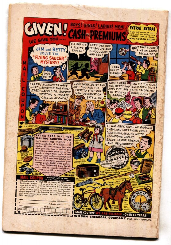 ROBIN HOOD TALES #9--DC--comic book--SWORD FIGHTS--1957 Cover by Andru and Esposito, Maid Marion and friar tuck appear. Large stain on covers. TITLE: Robin Hood Tales ISSUE: 9 GRADE: G/VG SKU: VE-30-210Seller Information