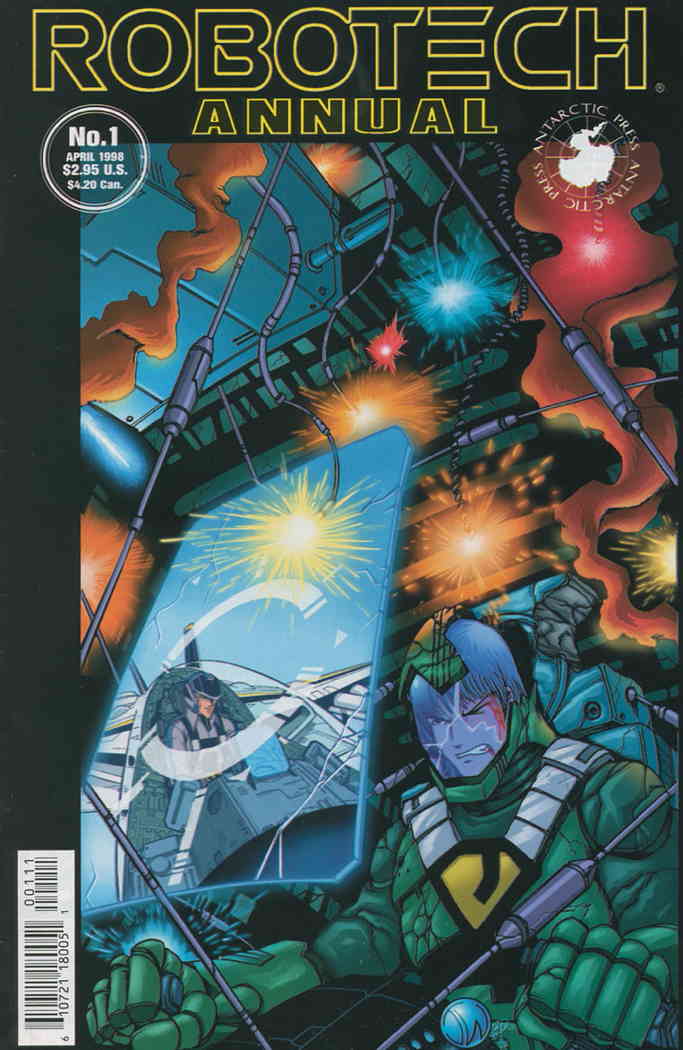 Item: Robotech Annual #1 | Publisher: Antarctic | Cover Date: April 1998 | Writer: Curtis Allen, Thor Badendyck | Artist: Lester O’Brien Jr., Thor Badendyck | Cover Artist: Fred Perry | Storylines: The First Person; Shop Talk or Why You Should Never Ride Without a Helmet | Notes: Print run: 6,400; B&W | With Economy shipping, each additional comic ships for just 50 cents more to customers in the USA. This listing contains a stock photo and information from ComicBase™ and © Human Computing. The stock photo is for reference only. If you would like to see a photo of the actual item, please message us prior to purchasing.Seller Information