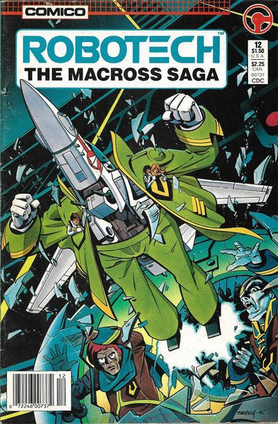 Item: Robotech: The Macross Saga #12 (Newsstand) | Publisher: COMICO | Cover Date: June 1986 | Writer: Jack Herman | Artist: Mike Leeke | Cover Artist: Ken Steacy | Appearances: Commander Azonia, Miriya Sterling | S ... Read More
