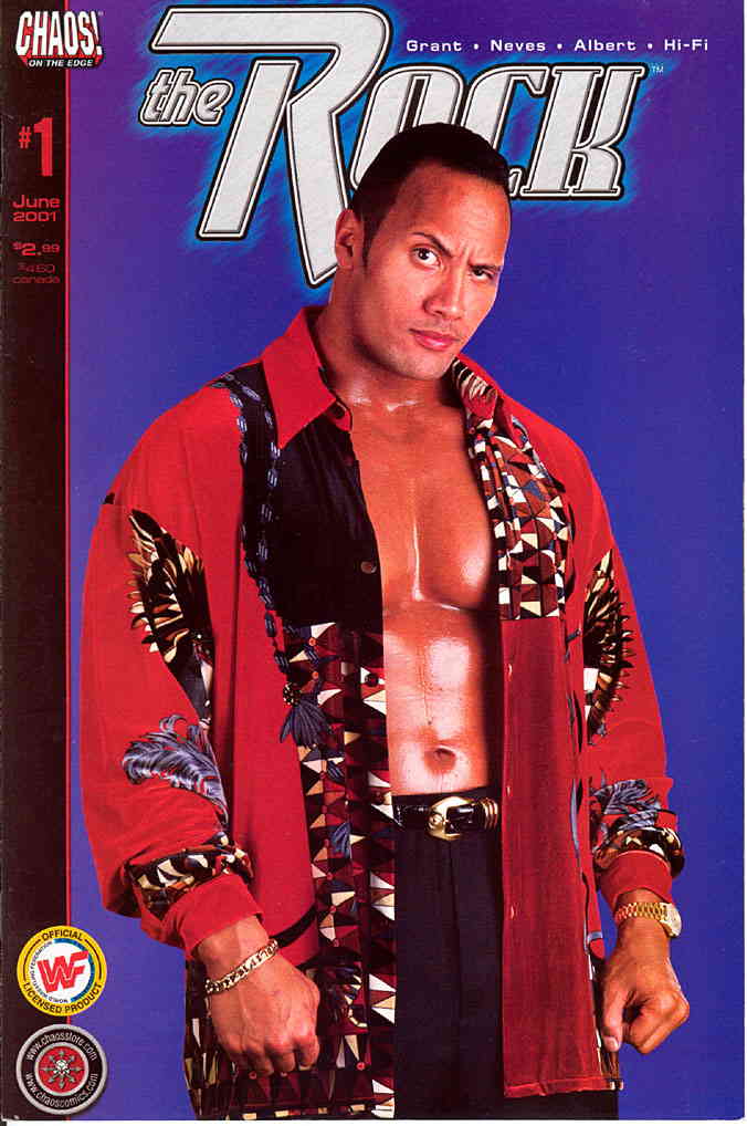 Item: Rock, The #1 | Publisher: Chaos | Cover Date: June 2001 | Writer: Steven Grant | Artist: Fabiano Neves | Storylines: The People’s Comic Book | Notes: Dwayne Johnson photo cover | With Economy shipping, each additional comic ships for just 50 cents more to customers in the USA. This listing contains a stock photo and information from ComicBase™ and © Human Computing. The stock photo is for reference only. If you would like to see a photo of the actual item, please message us prior to purchasing.Seller Information