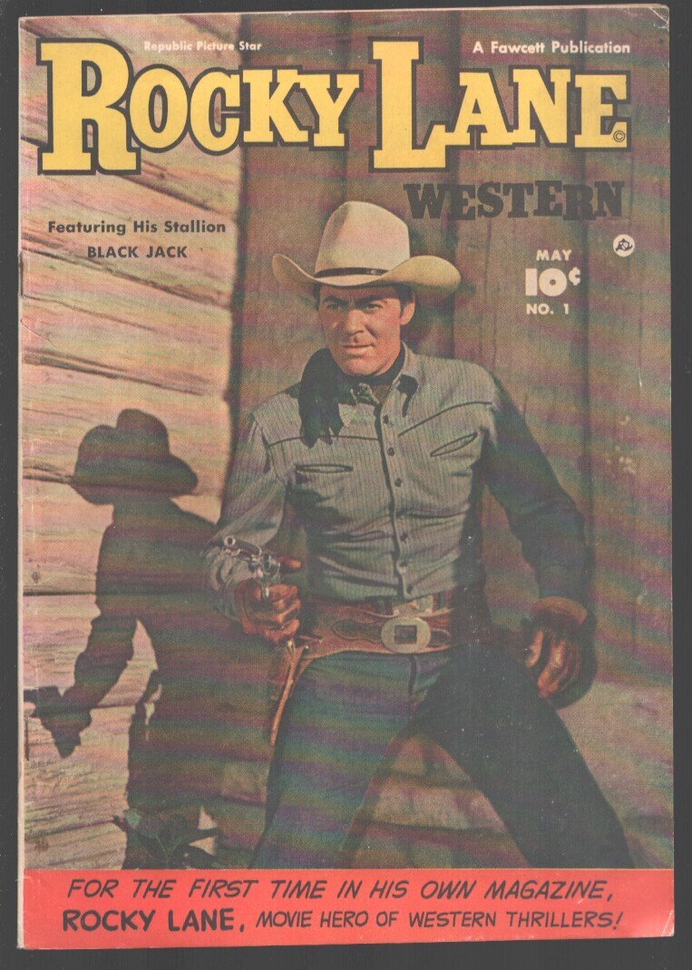 Grade: FN-Rocky Lane Western #1-1949-Fawcett-1st issue-B-Western movie photo cover-1st appearance of Rocky-Blackjack-Slim Pickens-FN- -First issue -B-Western movie photo cover -1st appearance of Rocky-Blackjack-Slim Pickens Grade: FN- SKU: U2-99-363