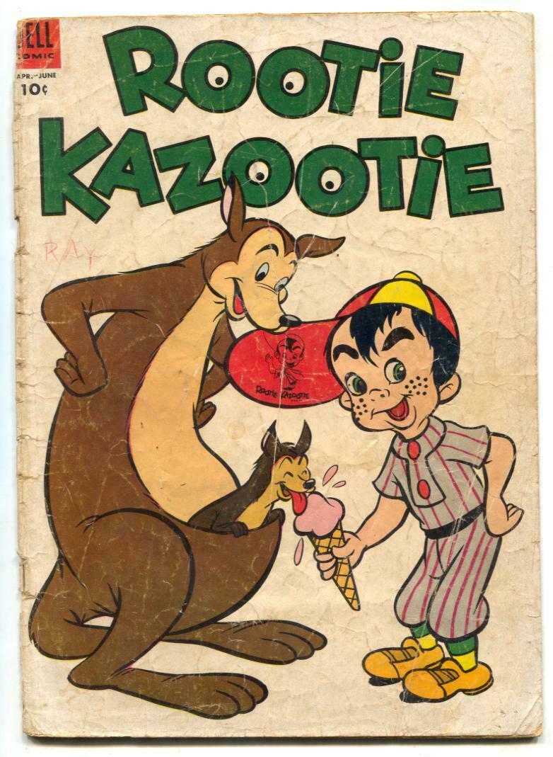 Rootie Kazootie Issue: 4 / Year: 1954 Condition: P-Ice cream cone & kangaroo cover. -1st page missing. Publisher: DellSku: LI-89-092 Over 100,000 mail orders processed! Buy with confidence. Track Page Views WithAuctiva's FREE Counter