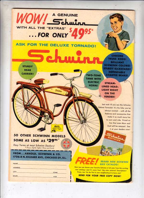 There is a cool Schwinn Bicycle ad on the back cover.