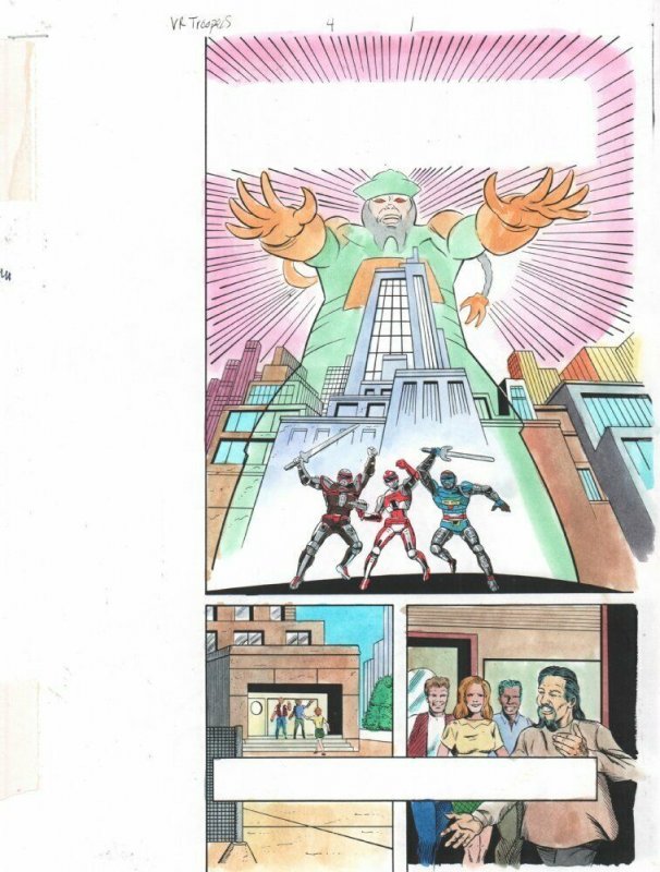 Saban's Mighty Morphin Power Rangers: Ninja Rangers/VR Troopers #4 p.1 - Title Splash - 1996Steve Ditko pencillerJim Amash inkerJohn Kalisz painter"This is a B&W STAT photo copy that the colorist, John Kalisz, painted over to create the published page. This is color art only, the original pencils and inks aren't on here." 9.5" x 11" with some moderate wear along the edges.This item was uploaded by Bobby.If you have any specific questions or requests, please ask us prior to ordering and we'll get back to you as soon as we can. If there are any problems with your order whatsoever, please message us before leaving feedback and we'll be happy to work with you to fix the situation!We ship worldwide, combine purchases, and charge exact shipping. The price may vary based on size, weight, and location. If you are automatically overcharged for shipping, message us and we'll be happy to revise the invoice or refund you the excess amount. If you have any questions regarding shipping, please message us.International Buyers - Please Note: Import duties, taxes, and charges are not included in the item price or shipping cost. These charges are the buyer's responsibility. Please check with your country's customs office to determine what these additional costs will be prior to bidding or buying. Payment can be made by PayPal and credit cards directly. 120,000+ items in total in my Hip store! Frequently Asked Questions: When are your operation hours?Our in office hours are Monday - Friday, 11 am - 8 pm. We are not open on weekends, so if you send us a request on Friday evening we won't get back to you until Monday afternoon. Please don't take it as us ignoring you! We will work on your request Monday and get back to you as soon as we can. Also, if you order from us on a Friday evening or Saturday morning we won't start processing your order until we open on Monday. That means on Monday it will be pulled and prepped for shipping, then picked up by the postman on Tuesday morning.When will you ship my item? The tracking hasn't moved.We realize you're eager to get your item, so if the tracking hasn't moved in a few days please don't be concerned. We give the postman a lot of packages daily, sometimes as many as 100, so he does not scan each item for us upon pickup as he says it would be too time consuming for him to do so. If you get a tracking number from us, that almost always means your item was picked up by the postman the next business day. The USPS is also imperfect. There are times when the tracking won't even show movement until it's in your area's regional distribution center. This is normal in our experience. Is this original artwork? Yes! I am a professional comic book art dealer with 20+ years experience. The image pictured is one of a kind original artwork unless otherwise described. Can you issue a COA? We can, upon request. Please make sure you leave us a note while checking out and shoot us a message immediately after requesting one, just to be sure. What is your base shipping for art? $10 for Domestic, International varies depending on location. Please use Hip's shipping calculator for specifics. How do you ship comics?We ship in rigid cardboard mailers to protect your comic book from the worst the mail system has to offer. Price varies based on the number of books you purchase, but we try to keep costs as low as we can and charge exact shipping. If it looks unusually high to you please send us a message and we'll be happy to double check for you. What is your base shipping for CGC comics? Domestic for CGCs are $10 for the first and $5 for each additional one you add. Do you combine shipping? Yes, of like items. Such as: several comics can fit in one cardboard mailer, as can more than one record. Multiple art pages can easily be combined because they are light and thin. Where combined shipping differs is with size and weight. For instance, two statues require a much bigger box. Same goes for CGCs, as the package gets bigger and heavier as you go. Do you ship well? I've had some bad experiences... You needn't worry; we are professionals who value your business and want your item to arrive safely as much as you do. I have been collecting for over 30 years. I send out items the way I would like to receive them. The tracking says my item is "OUT FOR DELIVERY" in New Jersey. Why is that?If the tracking indicates that the item is "OUT FOR DELIVERY" in NJ don't worry, it's just what the tracking says when it's carried over from the postman to the sorting center. This is normal for our Post Office and will not impact you receiving your item in a timely matter.Have these CGCs had any previous owners? No. I have personally sent in almost all of these to CGC and had them returned to me, offering them fresh to the market for the 1st time. I changed my mind after successfully winning the auction or fixed price listing, will you cancel the transaction? Please only bid or hit BUY IT NOW if you are willing to follow through and pay for the item, we will not cancel the transaction. As a seller, Hip penalizes us every time we cancel an order, so it is detrimental to our business to do so. Therefore if you will not pay, then you'll have to let Hip cycle this to an "unpaid item" and accept whatever action Hip deems necessary. 120,000+ items in total in my Hip store! MEET OUR STAFF: Pictured left to right, my employees: Bobby, Justin, Mario V., Connelly, Mario B., Alejandro, Sumie, and Anthony.AS SEEN ON TV : I have been buying and selling artwork and comics for about 20 years. If you are new to buying art or comics feel free to ask any questions that you may have. 120,000+ items in total in my Hip store! Small, Regular, and Large Portfolios available; see my Hip store!