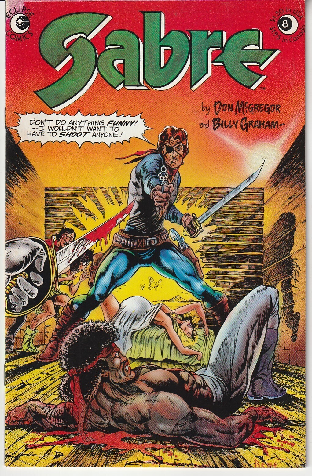 Very Fine condition - Few chinks on front and back of spine but cover and interior pages in pristine condition.Sabre is taking out by a gunner called Joyful as his mate, Melissa, is on the verge of giving birth ! Story and art by the former Black Panther creative team of writer Don McGregor and artist Billy Graham. Bonus: A solo story of Lemissa written by writer Don McGregor with art by Kent Williams