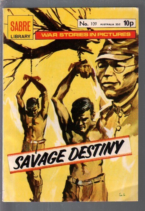 Grade: VFSabre Library #109 1976-Savage Destiny-WWII stories-printed in Spain-VF -"Savage Destiny" -WWII stories -Torture cover -Digest format, English language, printed in Spain Grade: VF SKU: CTR-63-050